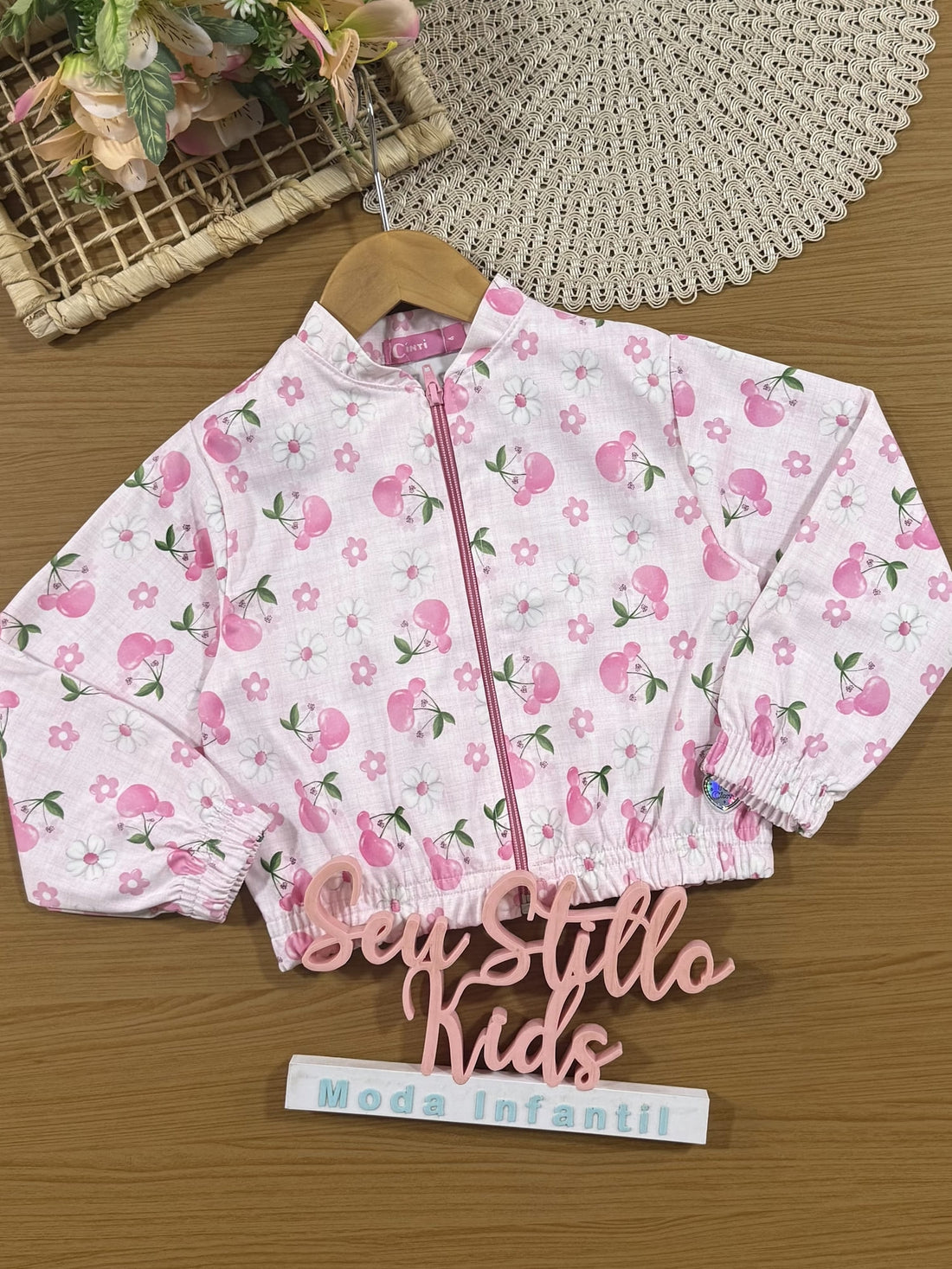 Jaqueta Infantil Cinti Verão Rosa Florzinha Cereja