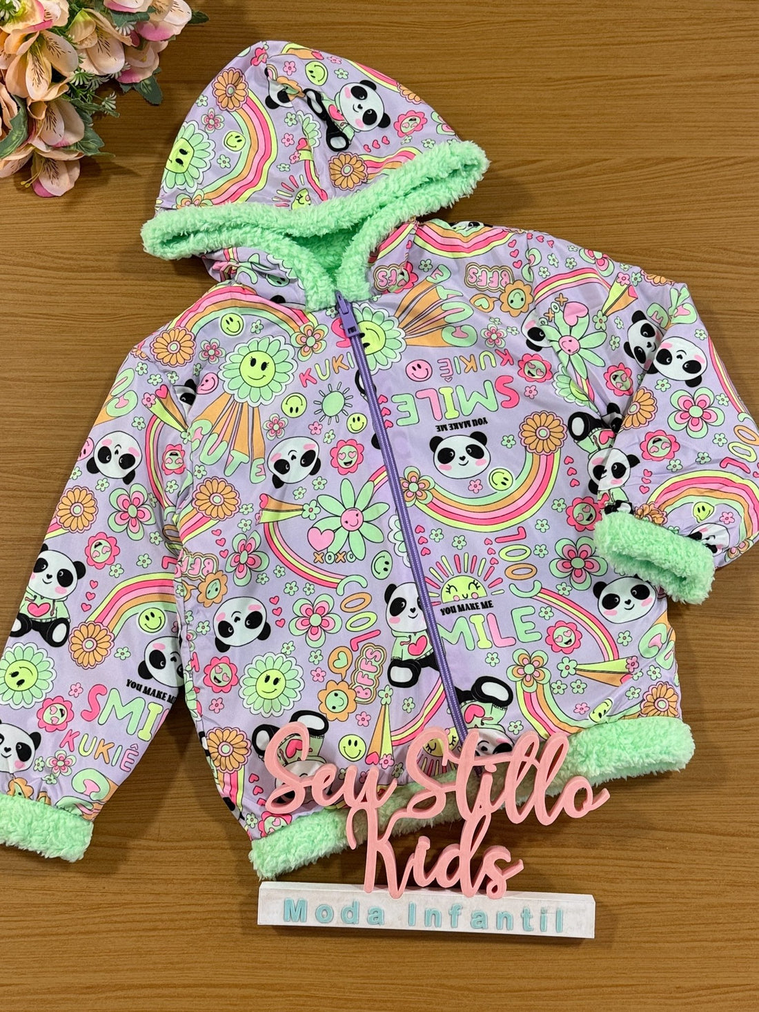 Jaqueta Infantil Kukie Inverno Puffer Panda Lilás