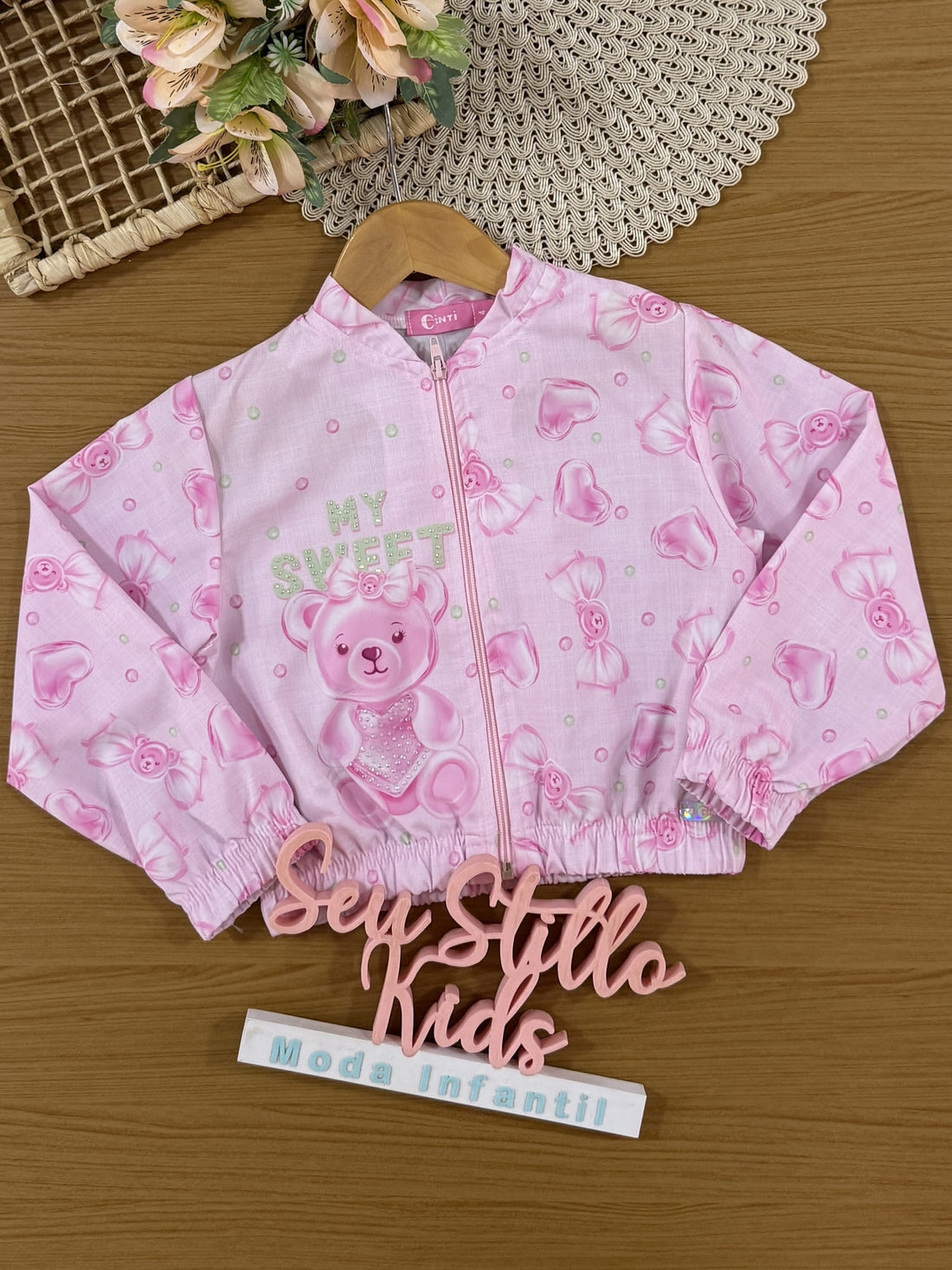 Jaqueta Infantil Cinti Verão Rosa Ursinha Docinhos