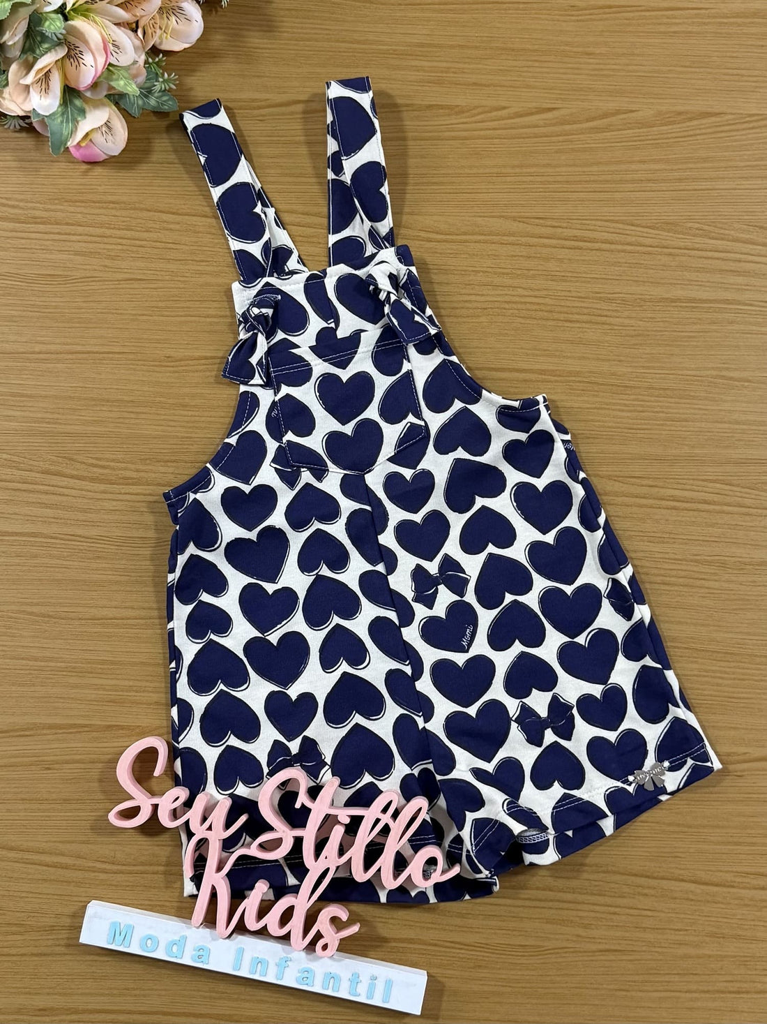 Jardineira Infantil Momi Inverno Azul Marinho Lacinhos