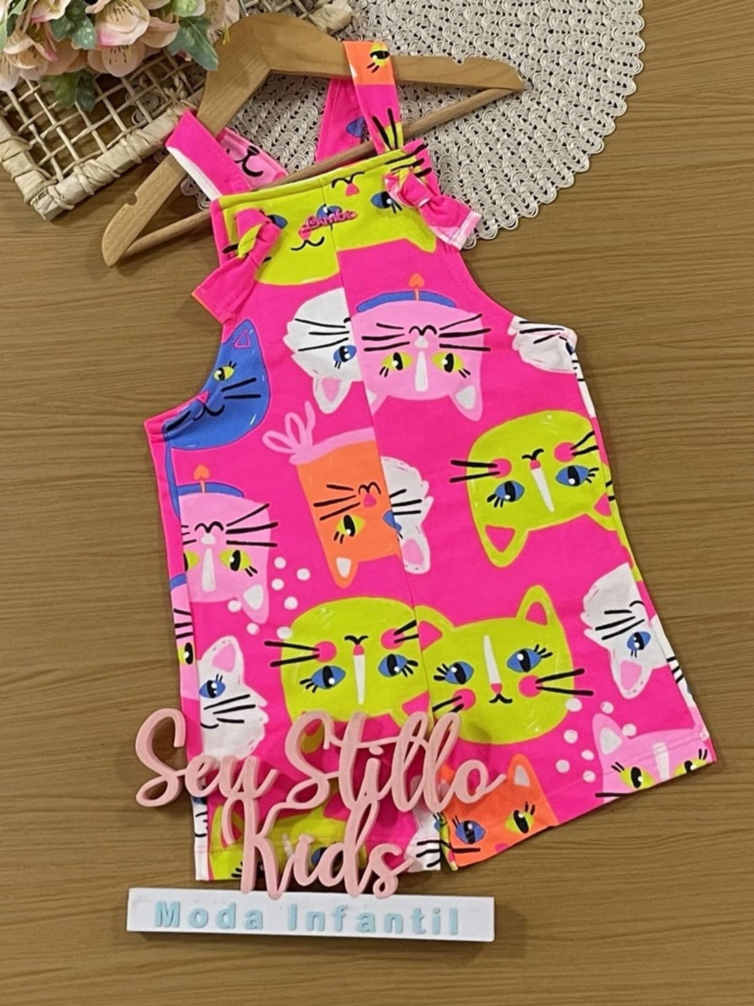 Jardineira Infantil Bimbi Verão Rosa Gatinhas