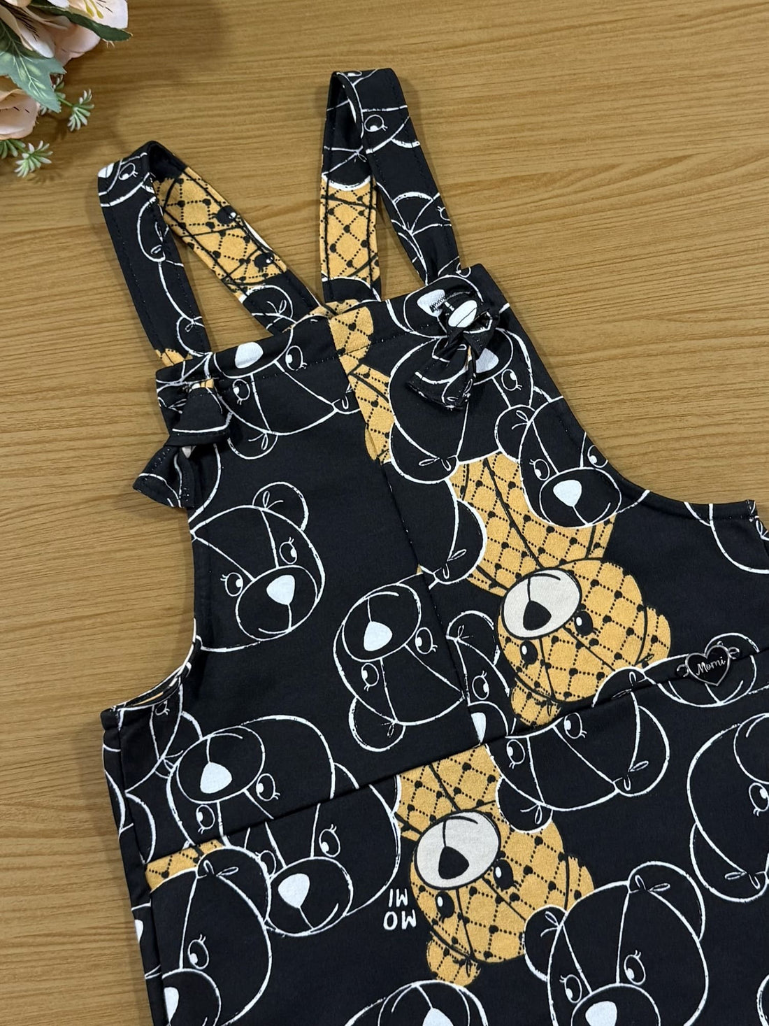 Jardineira Infantil Cinti Inverno Ursinhos e Blusa Manga Longa Branca