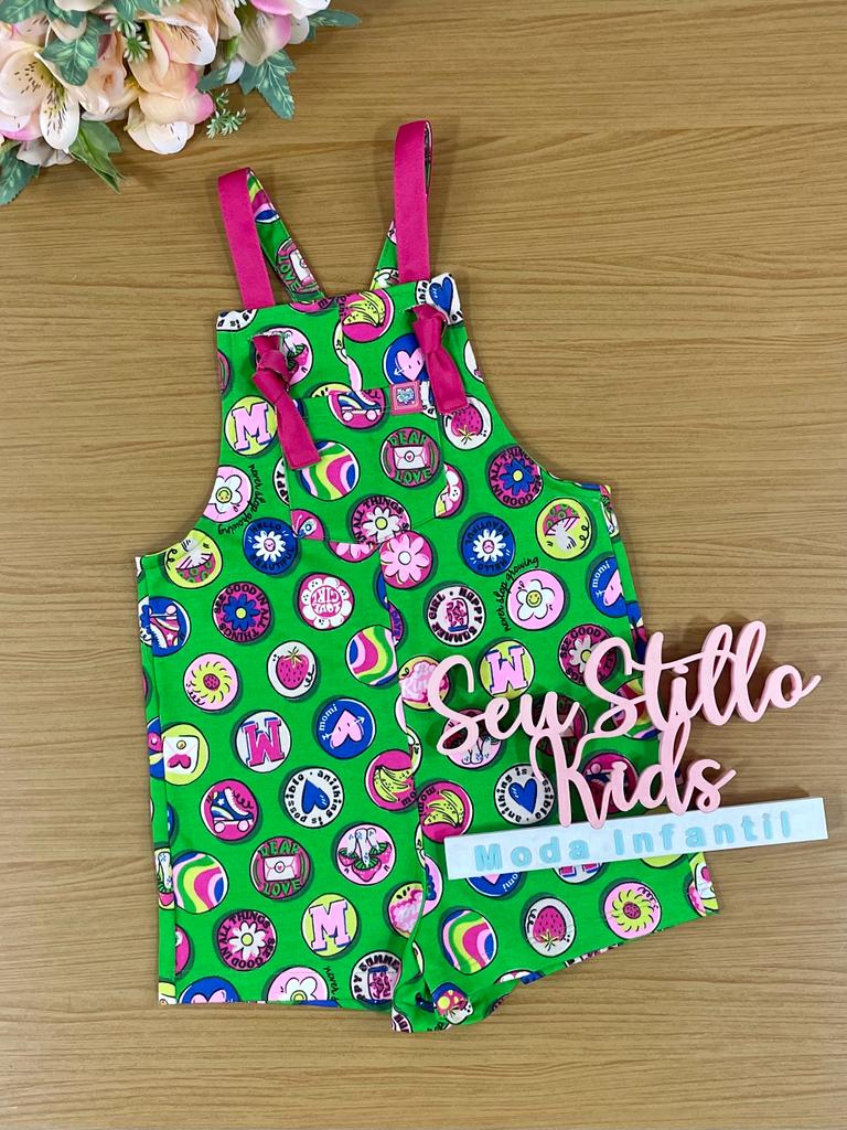 Jardineira Infantil Momi Verão Verde Estampa Variada