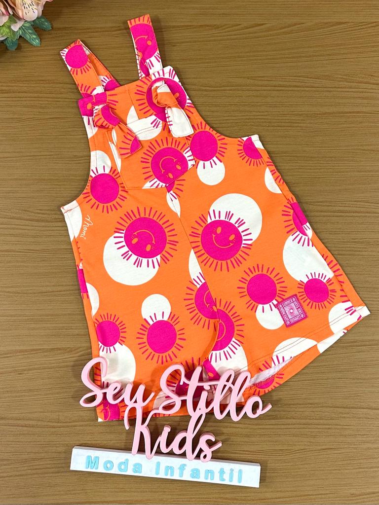 Jardineira Infantil Momi Verão Laranja Dia Feliz