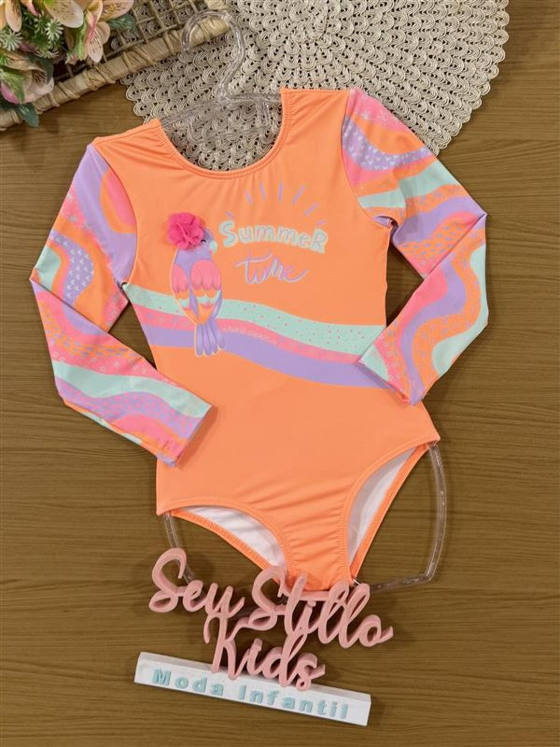 Maiô Infantil Kukiê Verão Laranja Passarinho