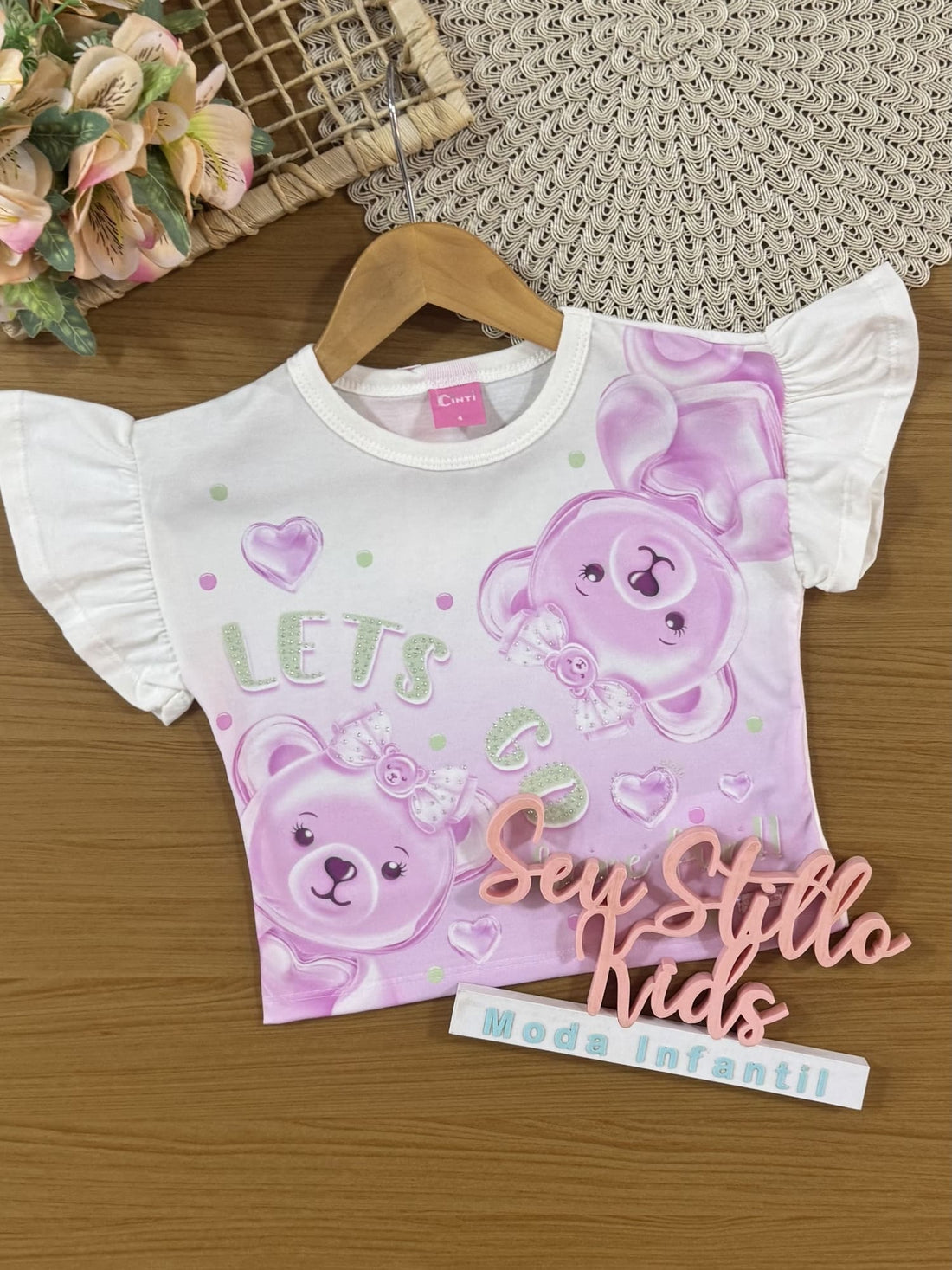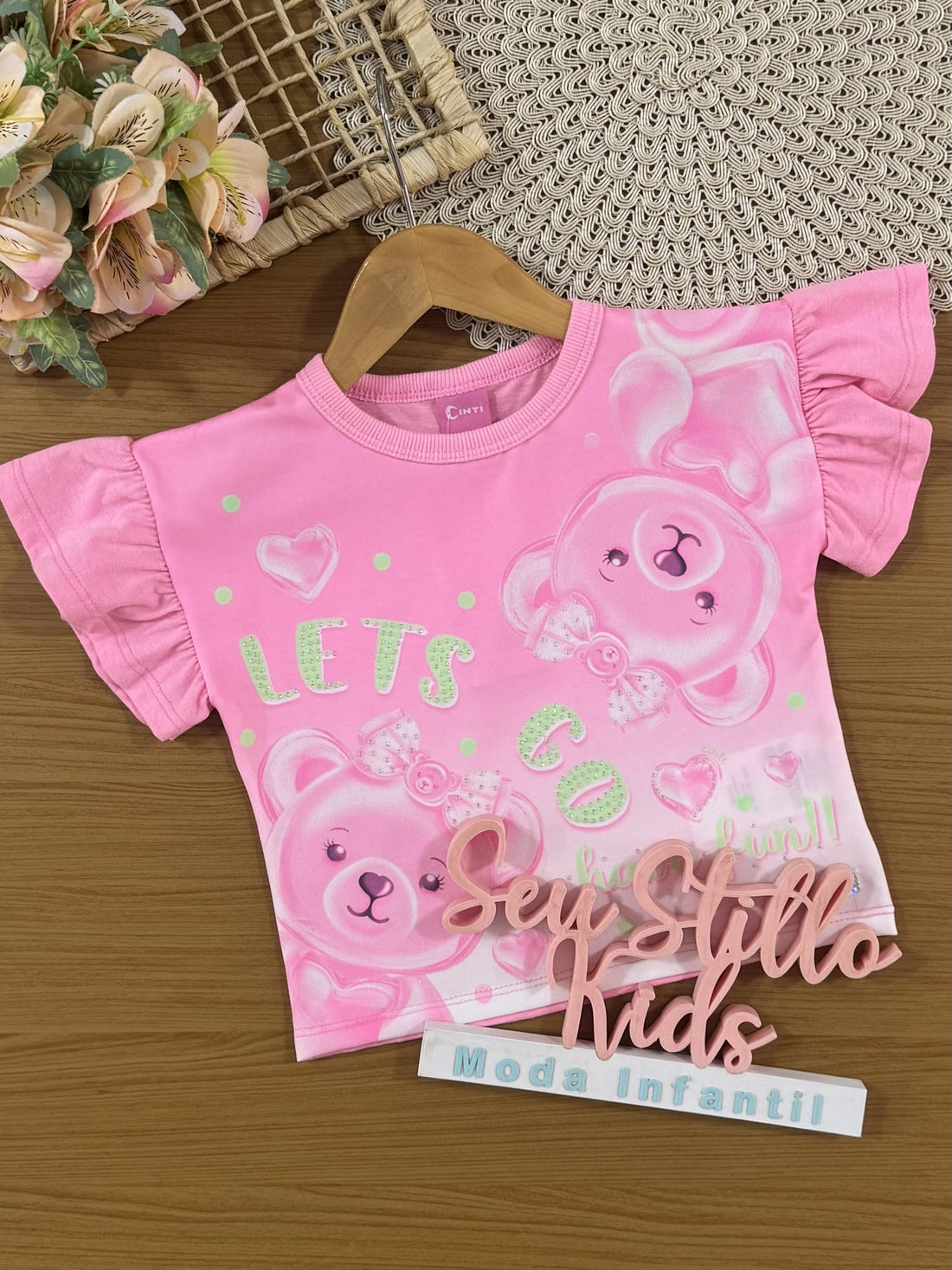 Blusa Infantil Cinti Verão Rosa Ursinhas com Strass