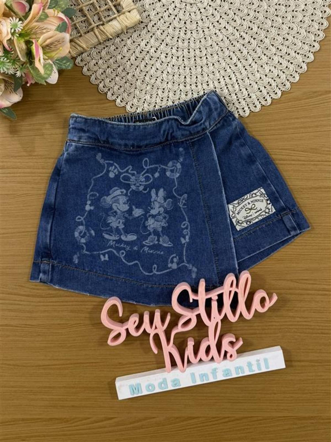 Shorts Saia Infantil Animê Verão Jeans Minnie e Mickey Marinheiros Disney