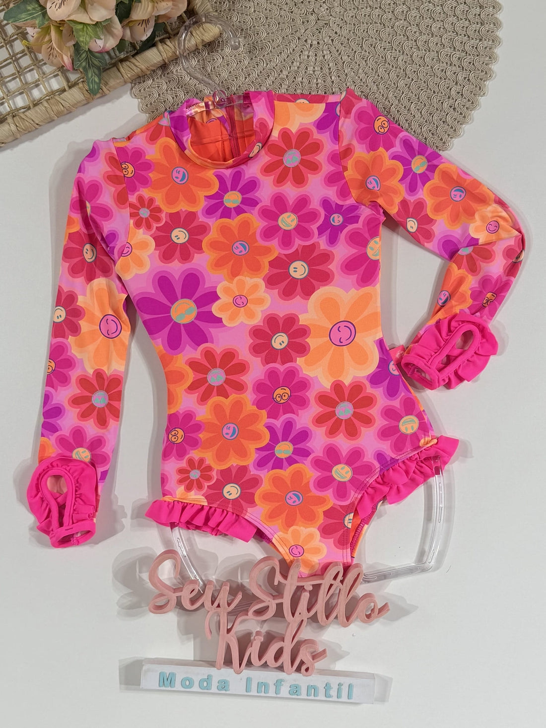 Maiô Infantil Siri Kids Manga Longa Aline Happy Flower 40005