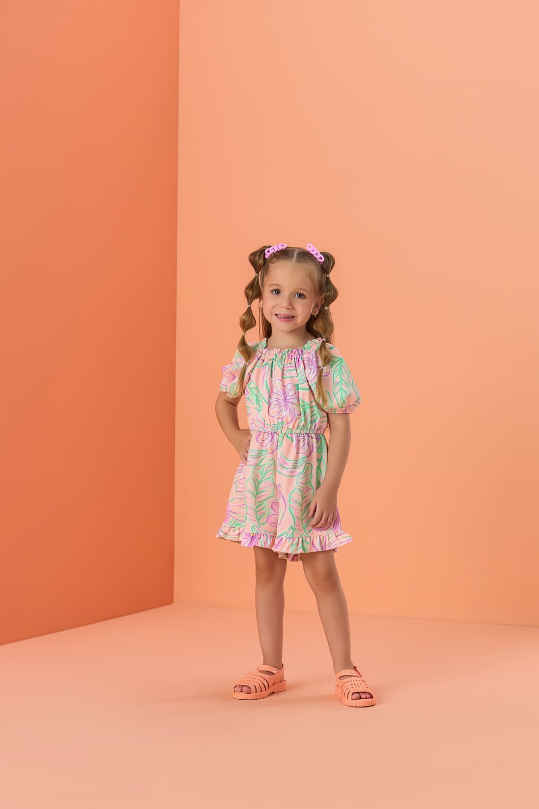 Macaquinho Infantil Cinti Verão Off White Oncinha Floral
