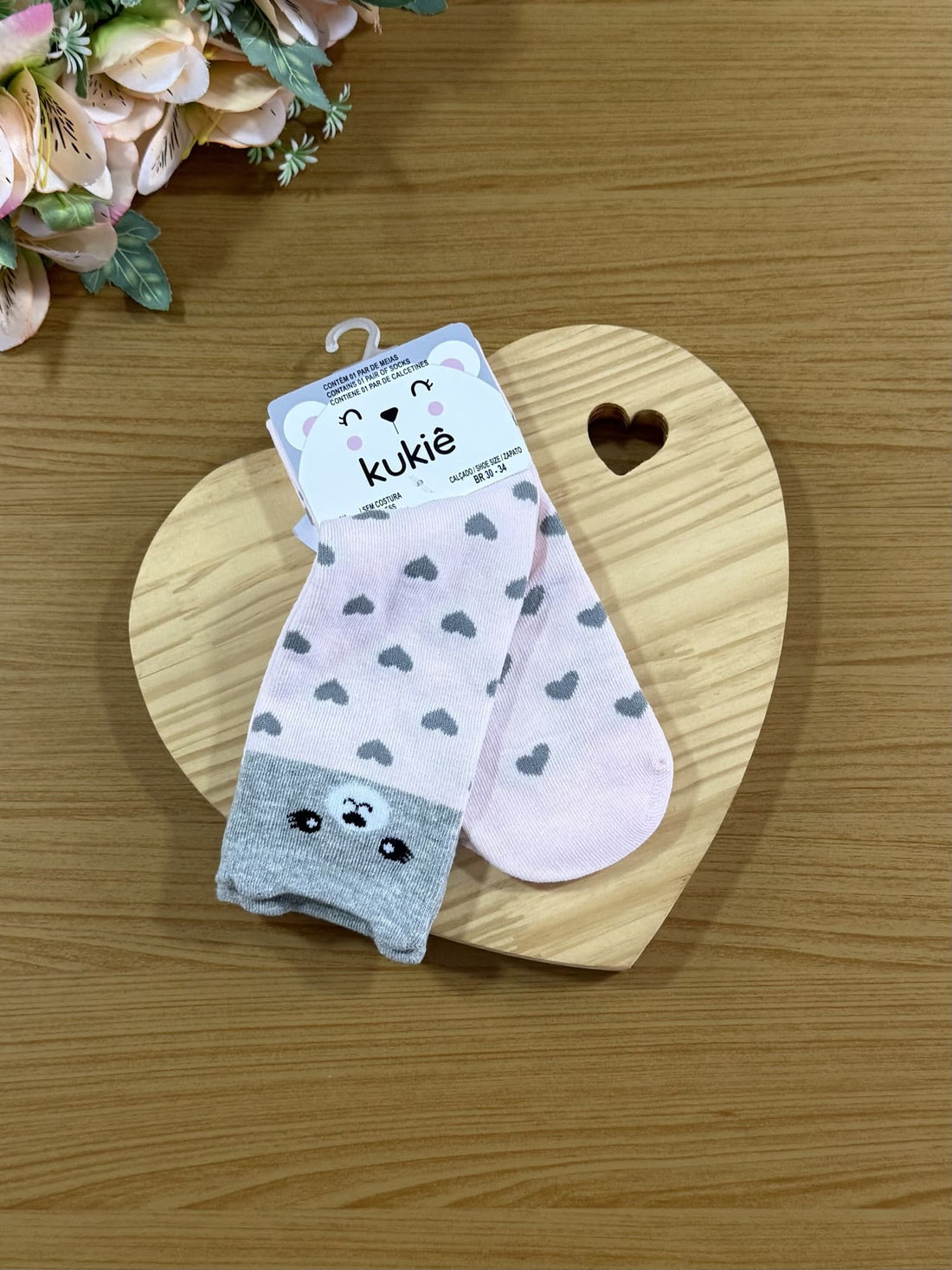 Meia Infantil 3/4 Kukie Inverno Rosa Ursinho