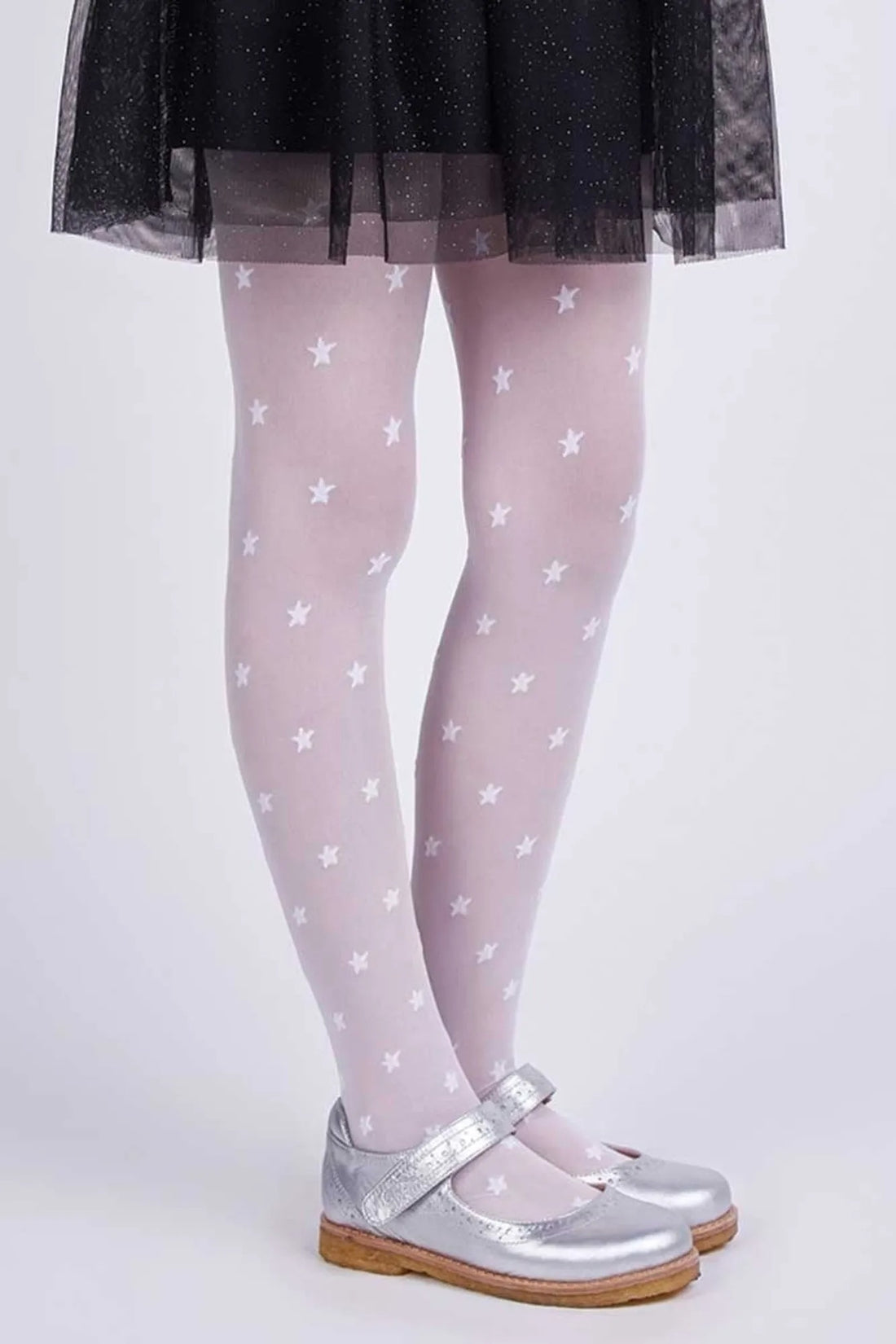 Meia Calça Infantil Lobinha Lupo Fina Estrelinha Fio 20 Branca