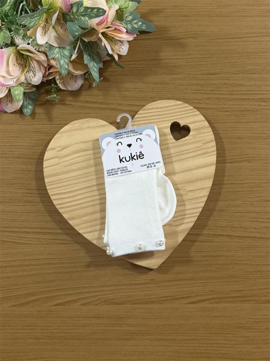 Meia Infantil 3/4 Kukie Inverno Branca com Pérolas