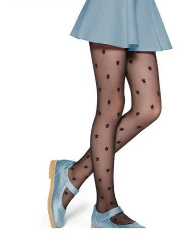 Meia Calça Infantil Lobinha Lupo Fina Estrelinha Fio 20 Preta