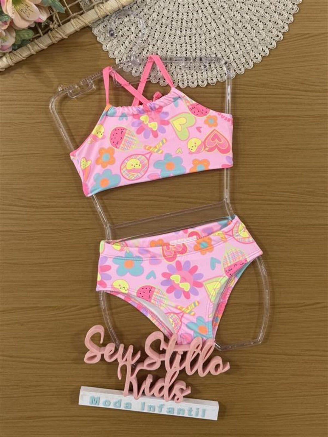 Biquíni Infantil Kukiê Verão Rosa Neon