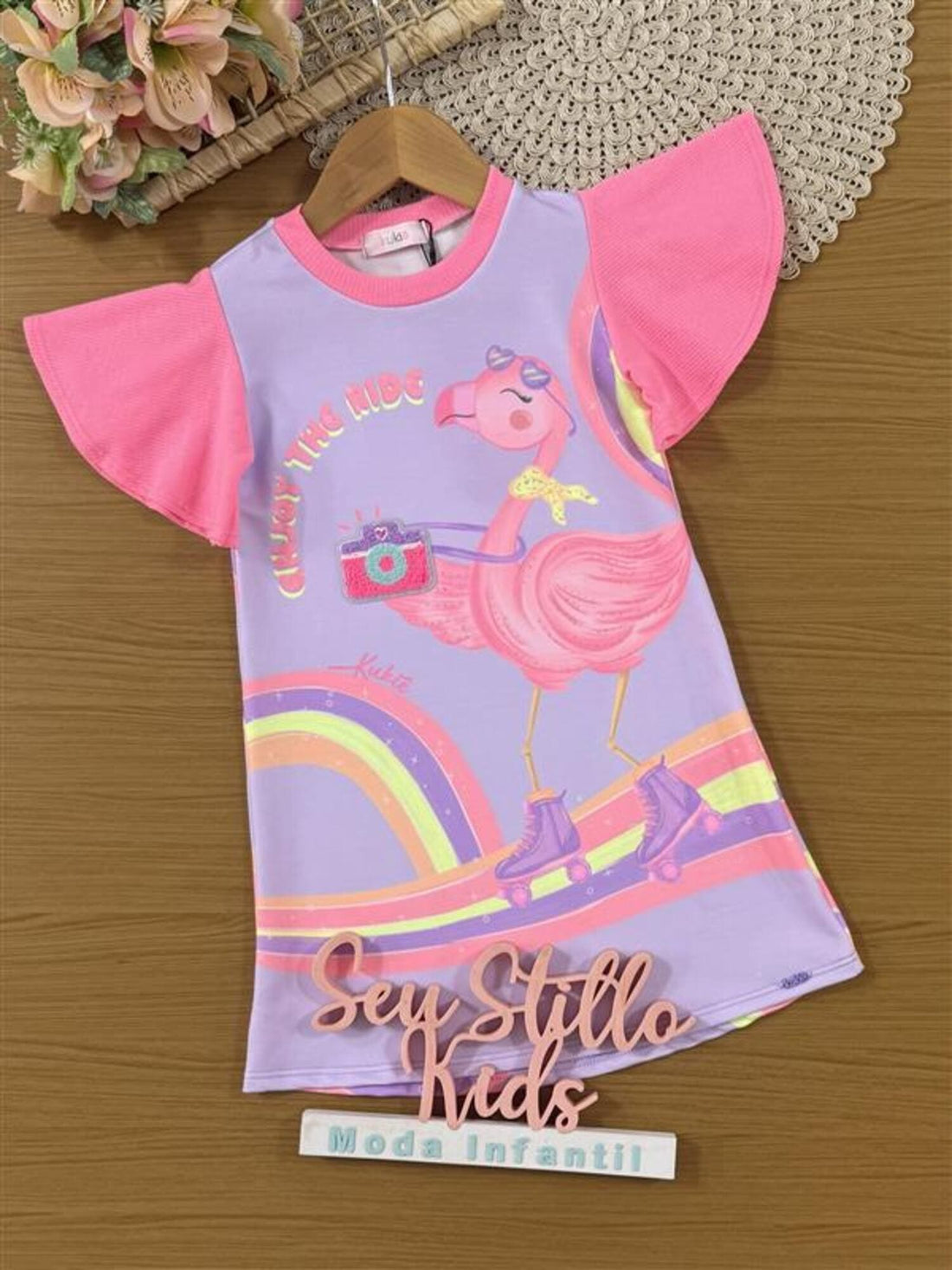 Vestido Infantil Kukiê Verão Lilás Flamingo Arco-íris