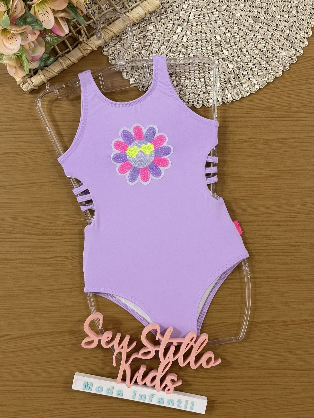 Maiô Infanil Kukiê Verão Lilás Florzinha com Paetê