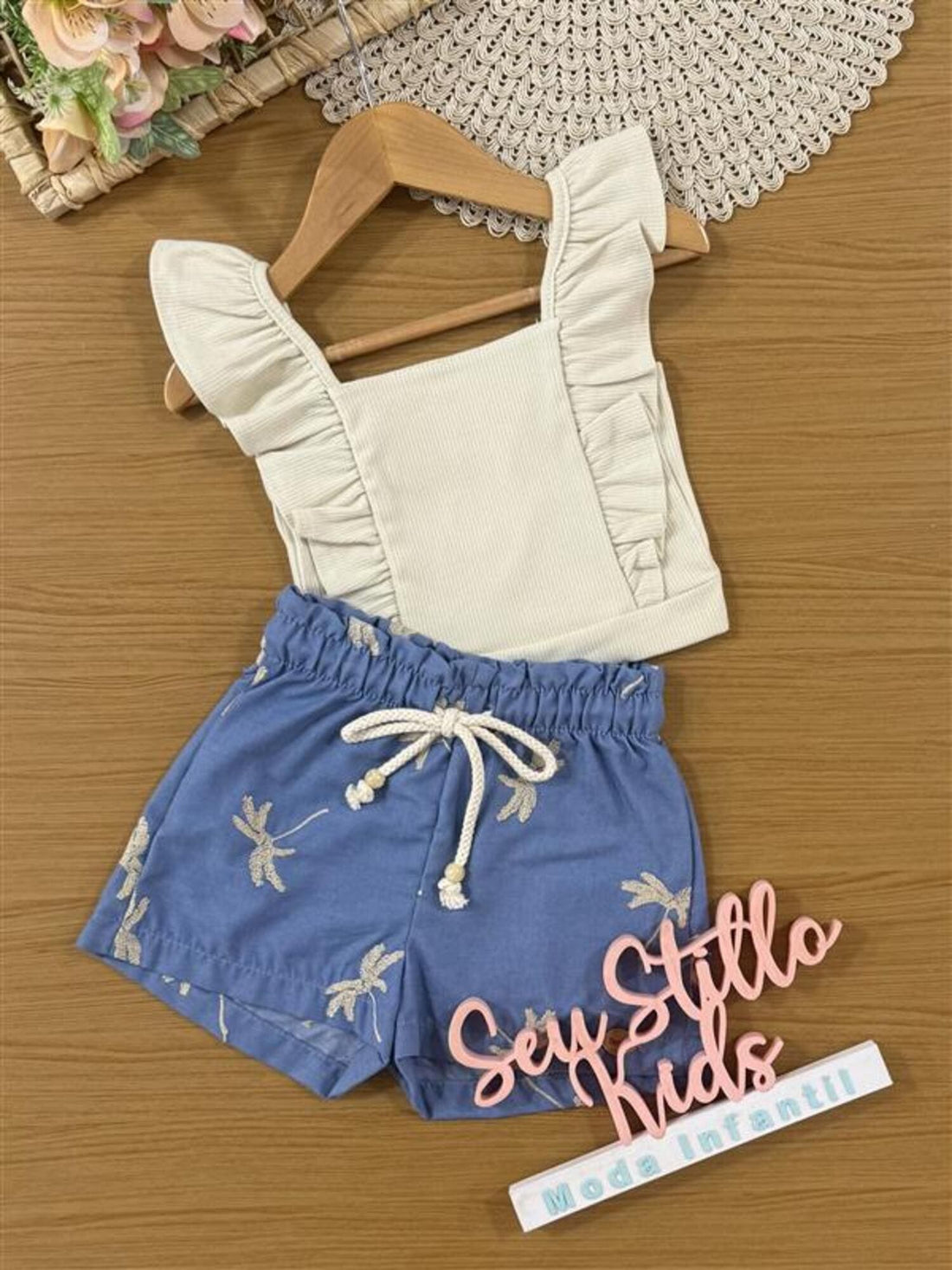 Conjunto Infantil Kukiê Verão com Shorts Off White e Blusa Branca