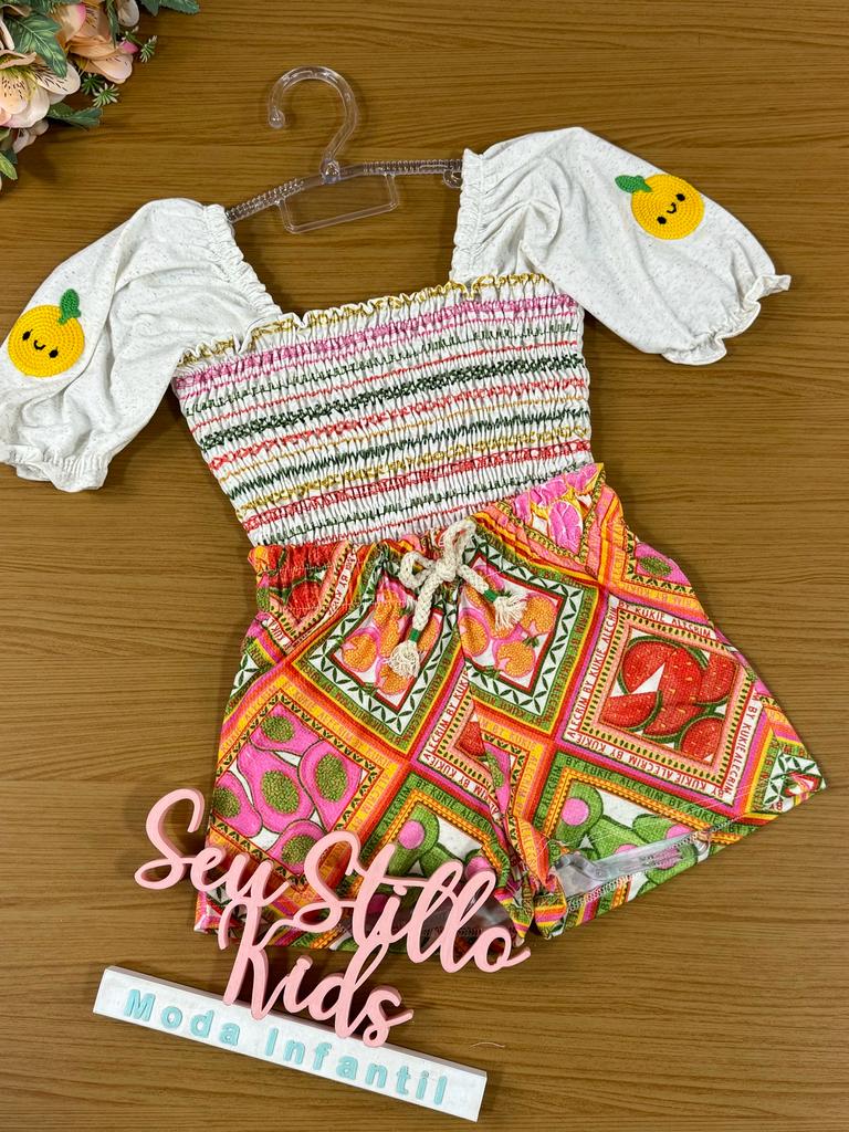 Conjunto Infantil Kukie Verão Com Shorts e Blusa Laranjinha