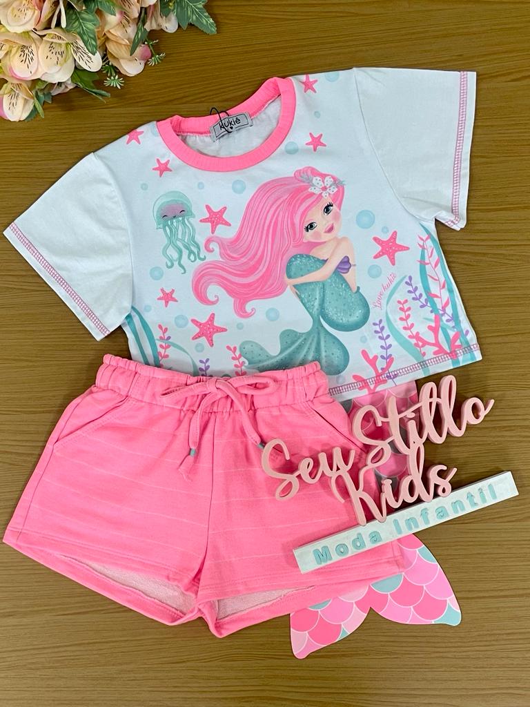 Conjunto Infantil Kukie Verão Com Shorts e Blusa Sereia