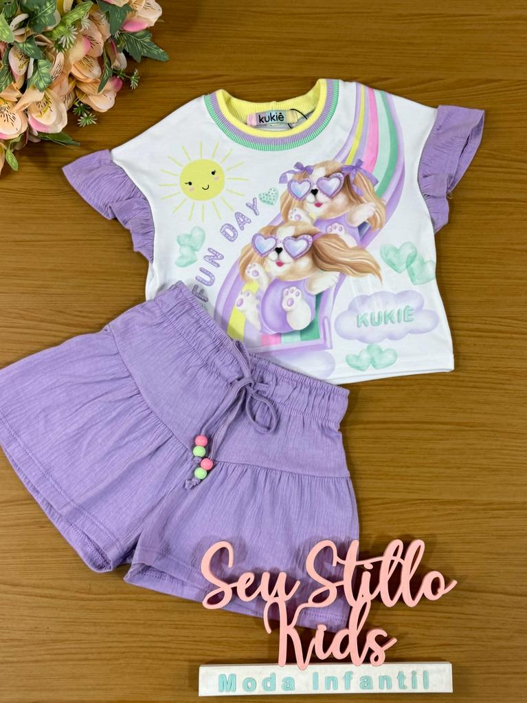 Conjunto Infantil Kukie Verão Com Shorts e Blusa Cachorrinha