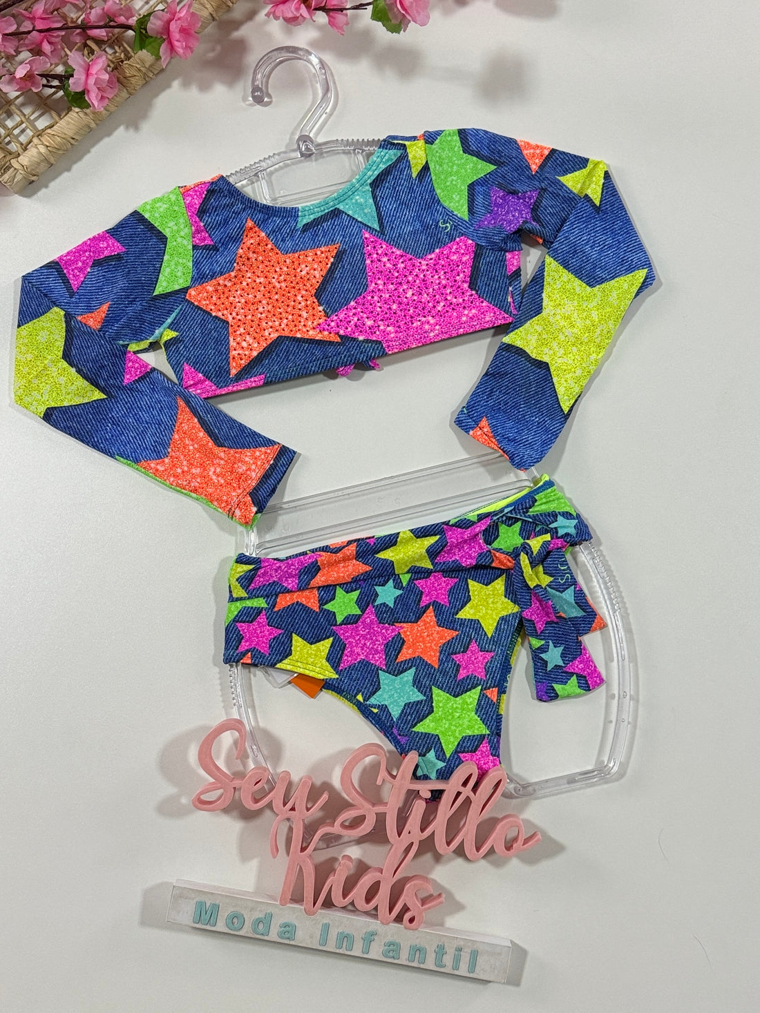 Biquíni Infantil Siri Kids Manga Longa Thais Estrela 39244