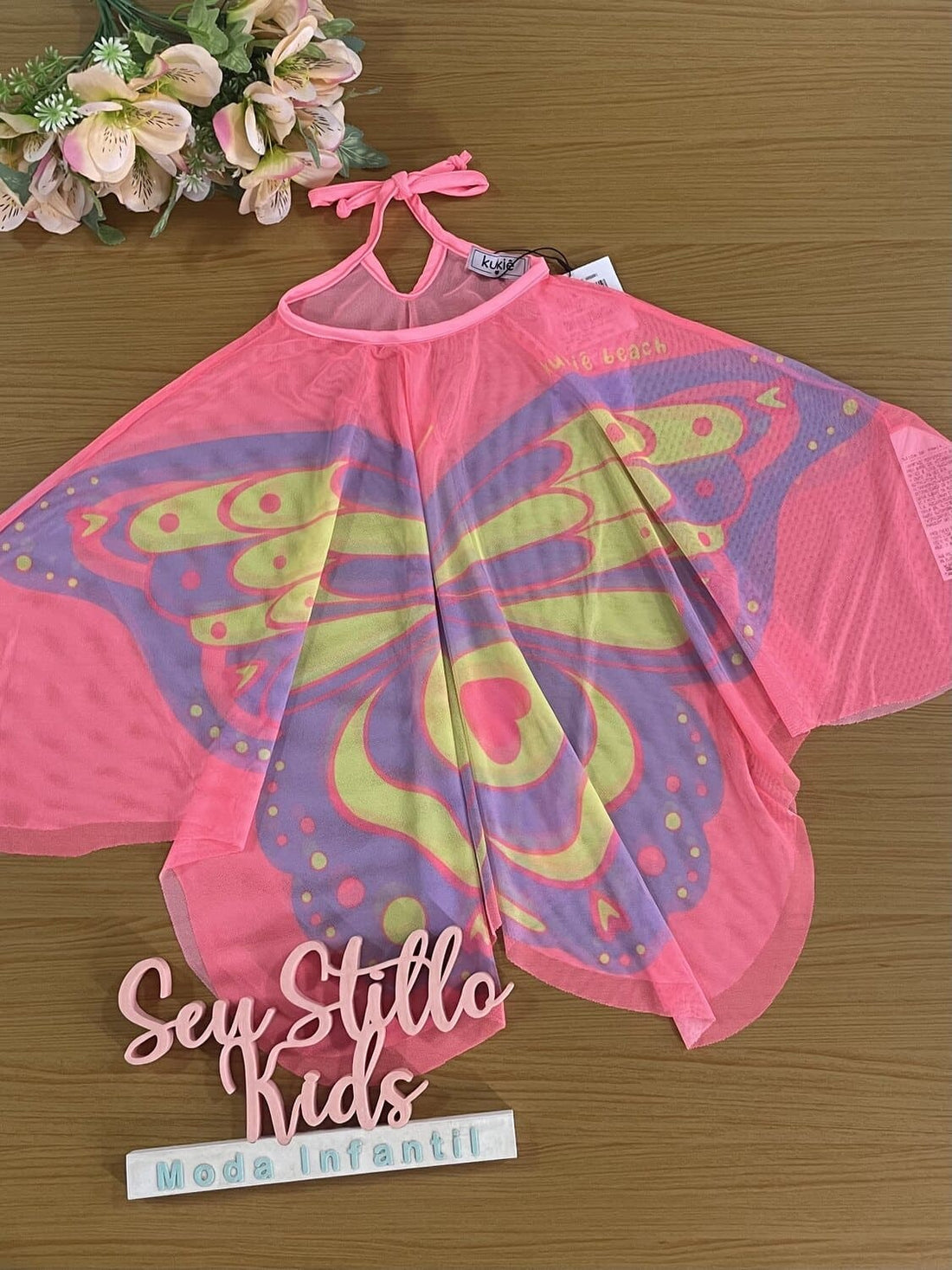 Saída de Praia Infantil Kukie Verão Rosa Borboleta