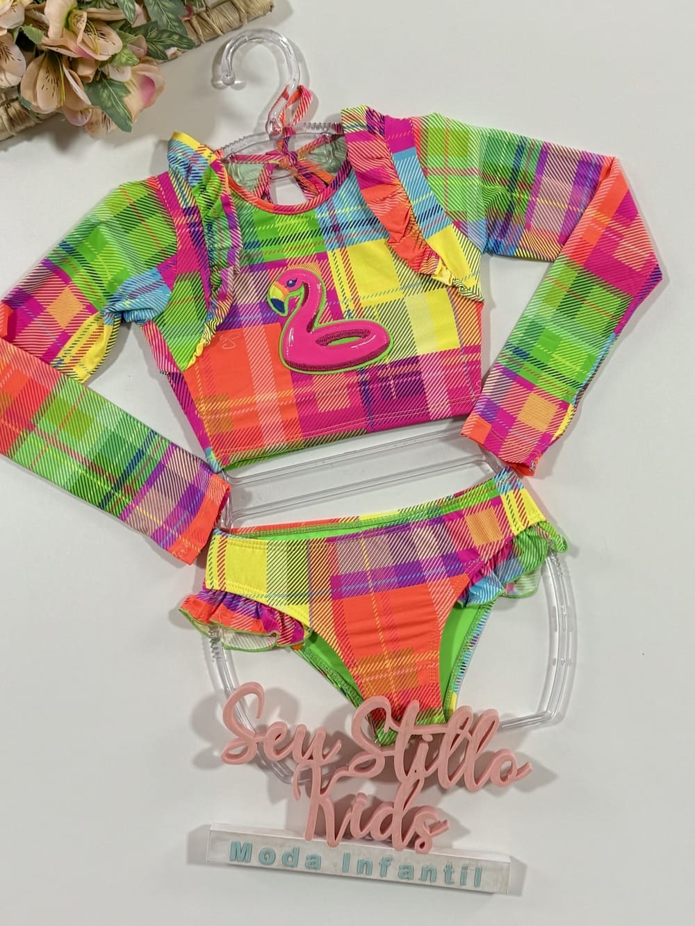 Biquíni Infantil Siri Kids Fernanda Cropped Manga Longa Est Jardim Colorido 40201