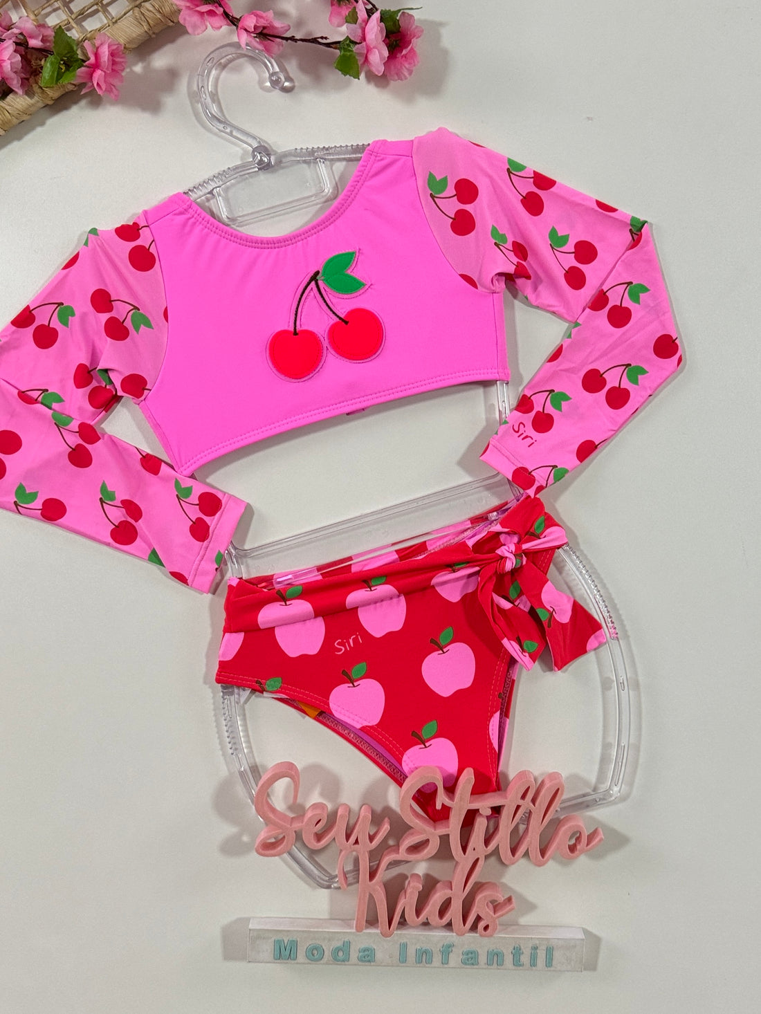 Biquíni Infantil Siri Kids Manga Longa Thais Cereja 39106