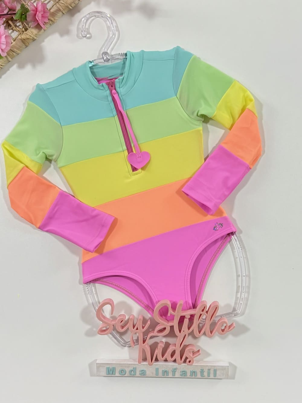 Maiô Infantil Siri Kids Manga Longa Aline Happy Flower 40005