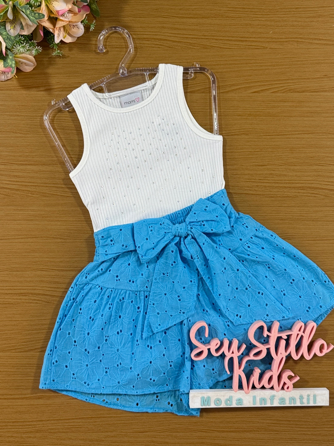 Conjunto Infantil Momi Verão Shorts Laise Azul e Blusa