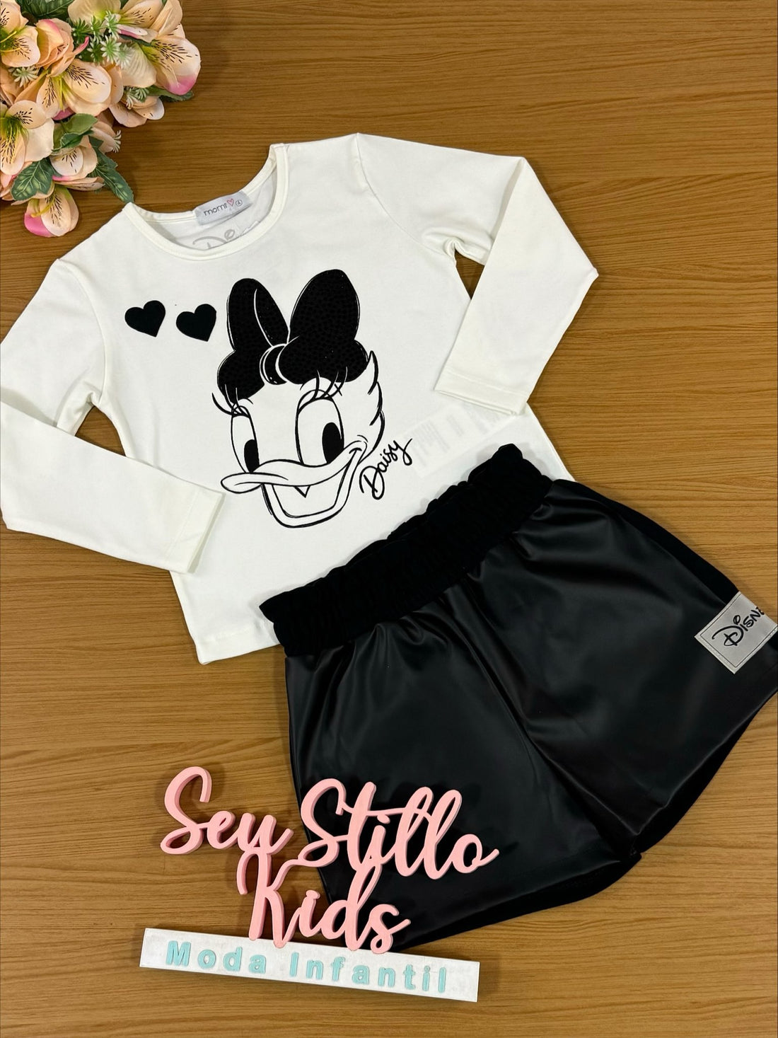 Conjunto Infantil Momi Inverno Shorts Preto e Blusa Margarida Disney