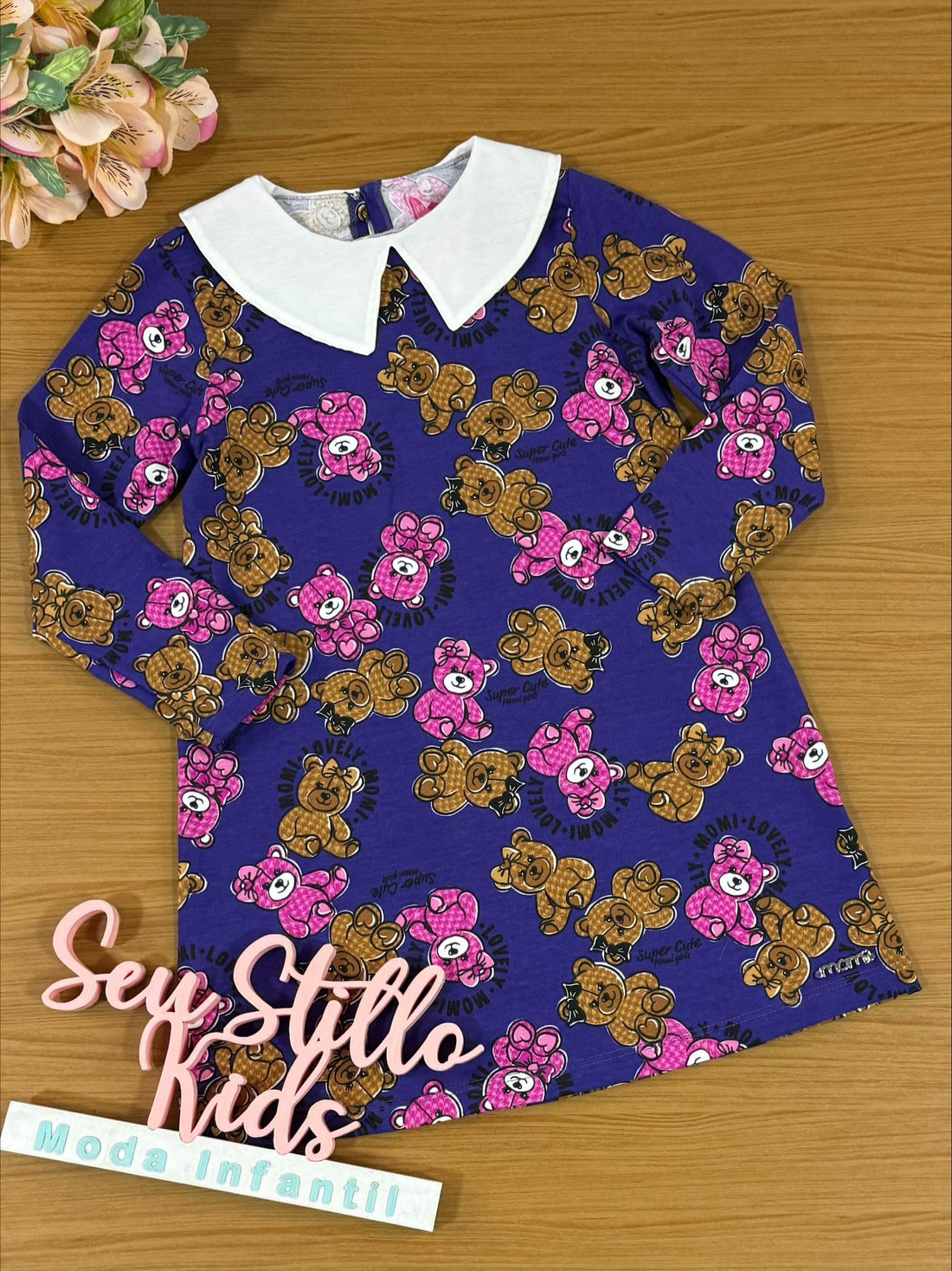 Jardineira Infantil Momi Inverno Roxa Urso Teddy