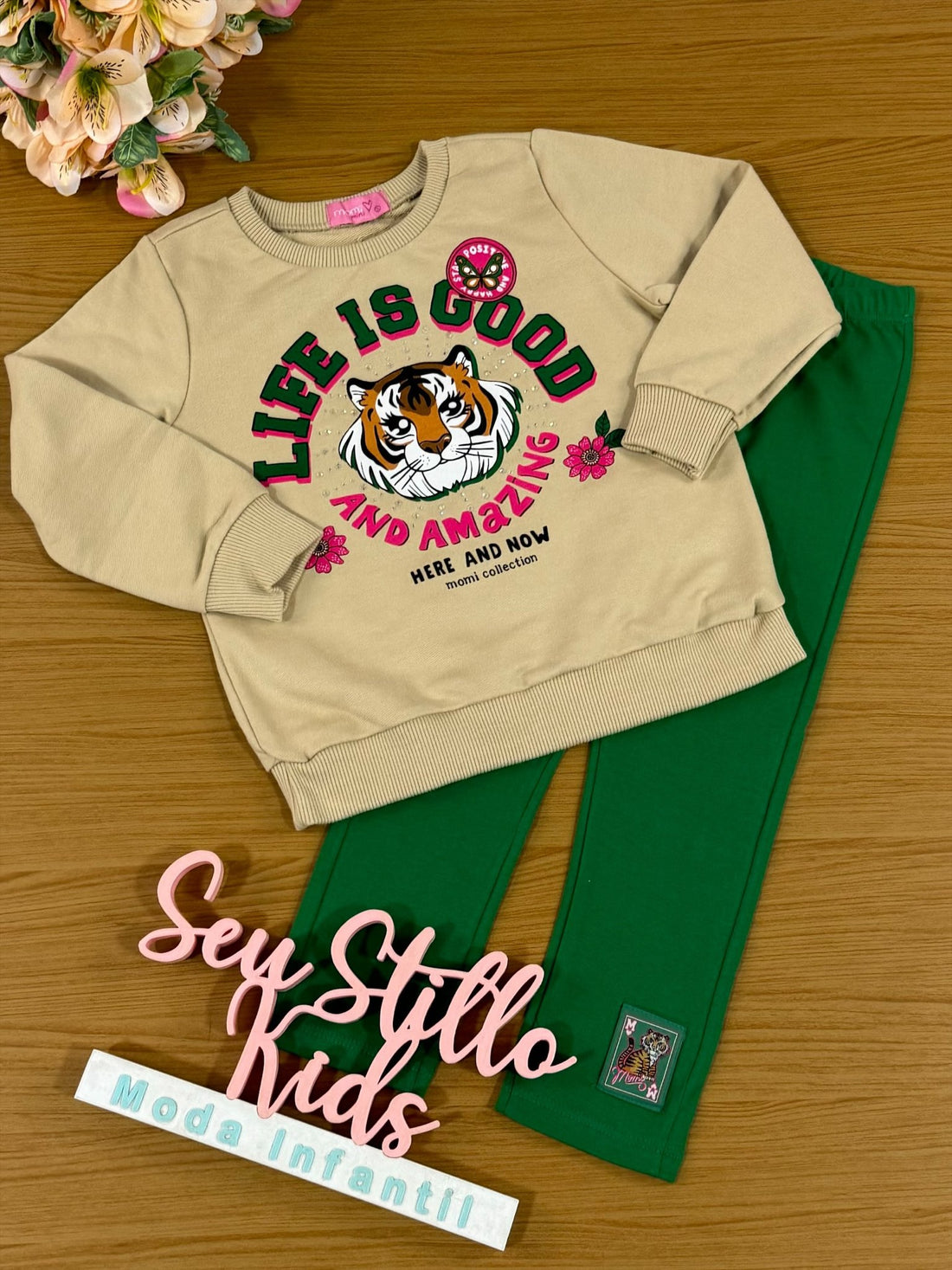 Conjunto Infantil Momi Inverno Legging Verde Moletom Tigre