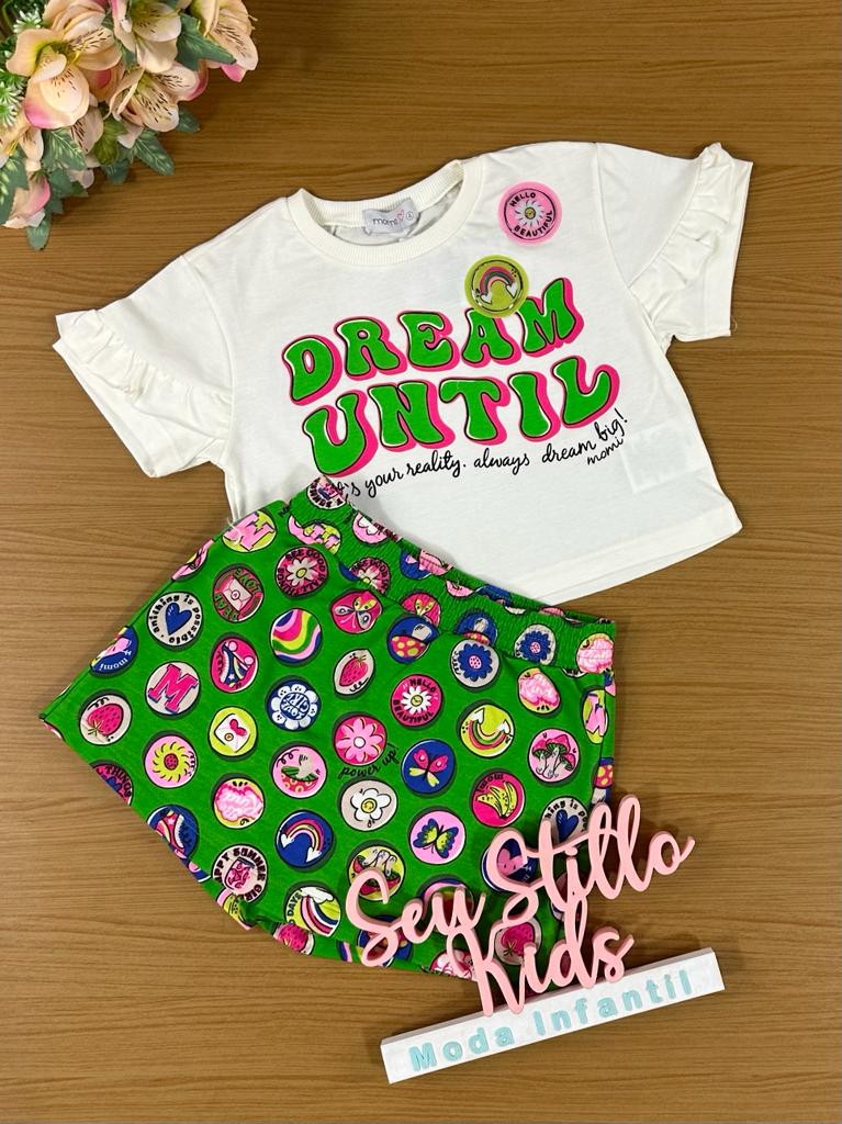 Conjunto Infantil Momi Verão Com Shorts Saia e Blusa Branca Sonhos