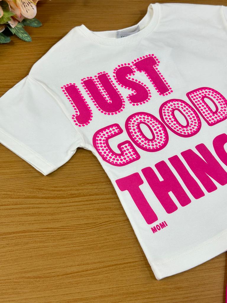 Conjunto Infantil Momi Verão Com Bermuda e Blusa Rosa Vibes Delicada