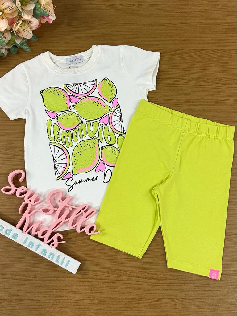 Conjunto Infantil Momi Verão Com Bermuda e Blusa Branca Limãozinho
