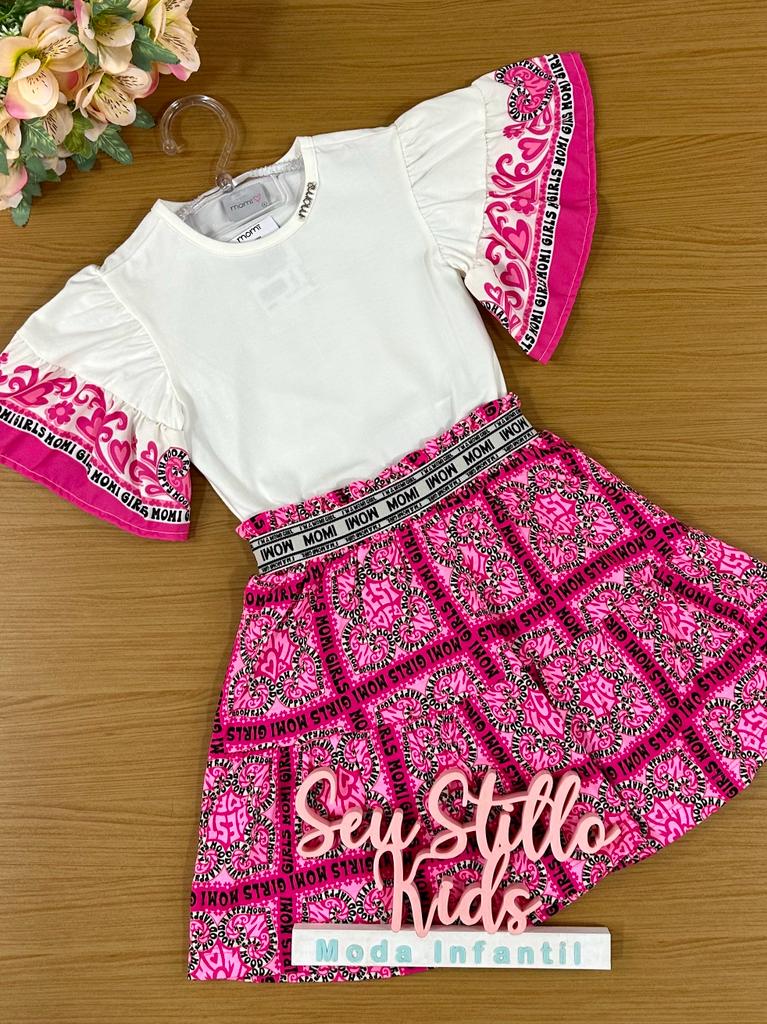 Conjunto Infantil Momi Verão Com Shorts e Blusa Rosa Fashion