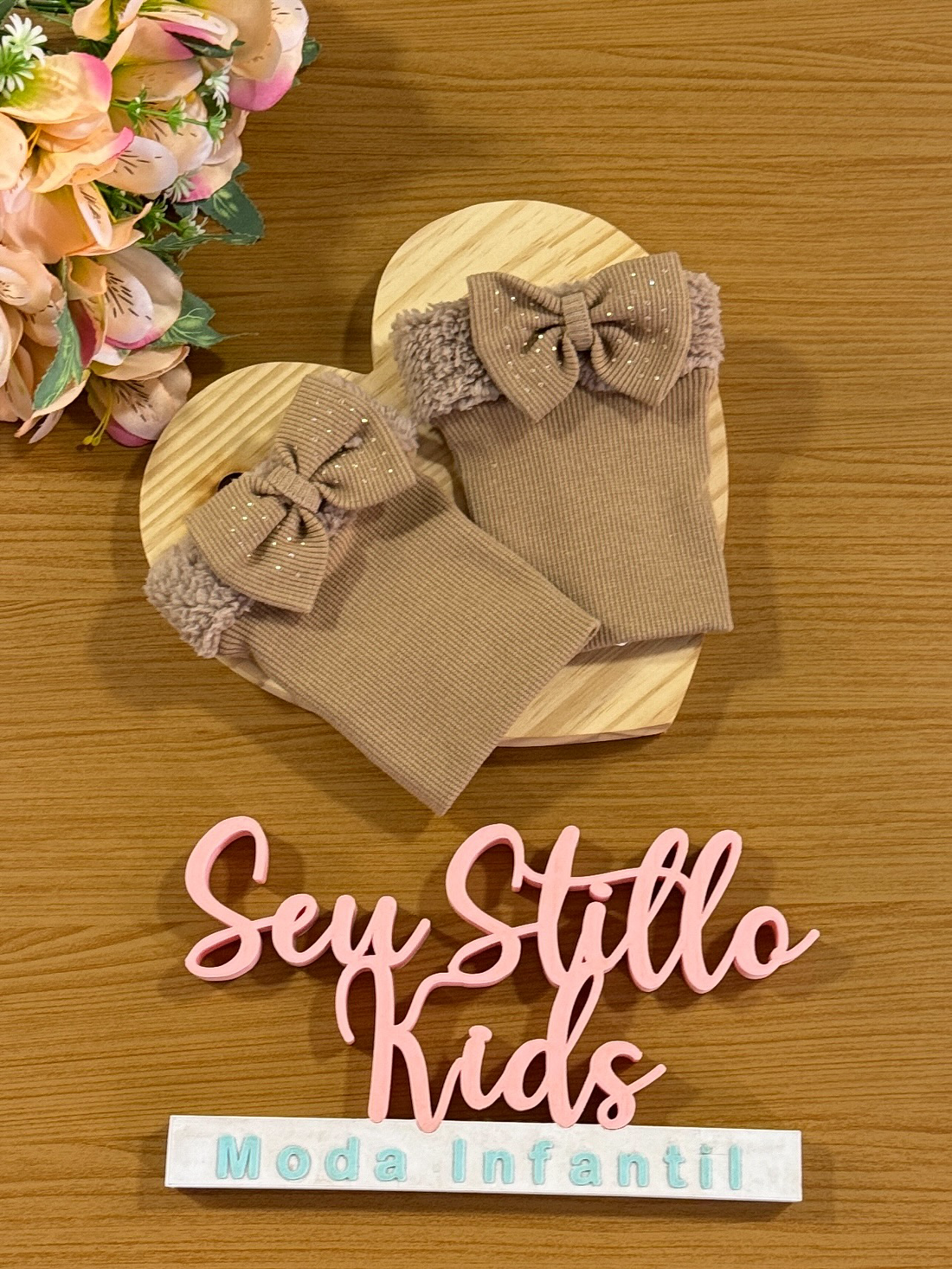 Polaina Infantil Kukie em Pelinhos e Laço Marrom