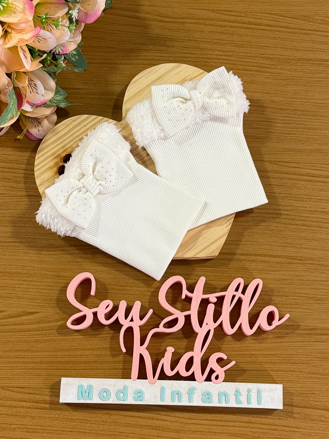 Polaina Infantil Kukie em Pelinhos e Laço Branca