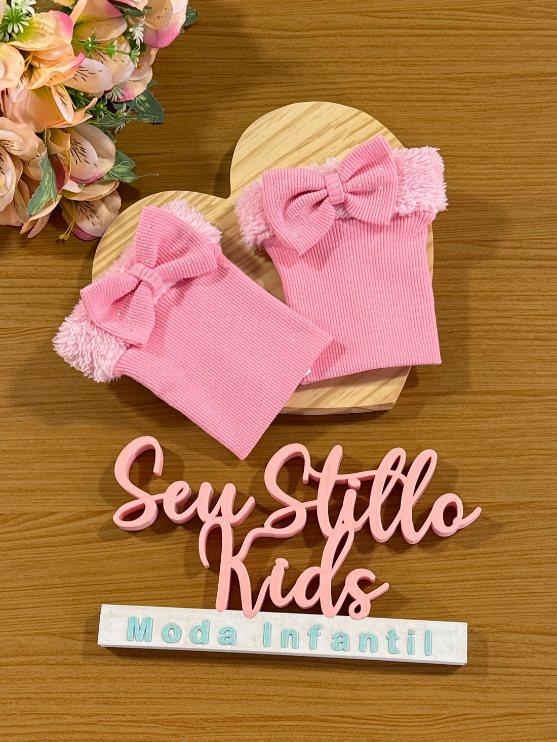Polaina Infantil Kukie em Pelinhos e Laço Rosa
