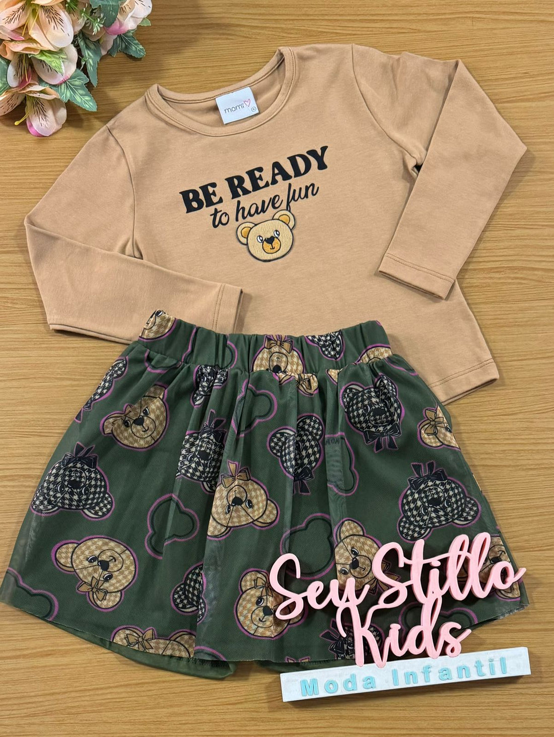 Conjunto Infantil Momi Inverno Saia Ursinhos e Blusa Caramelo