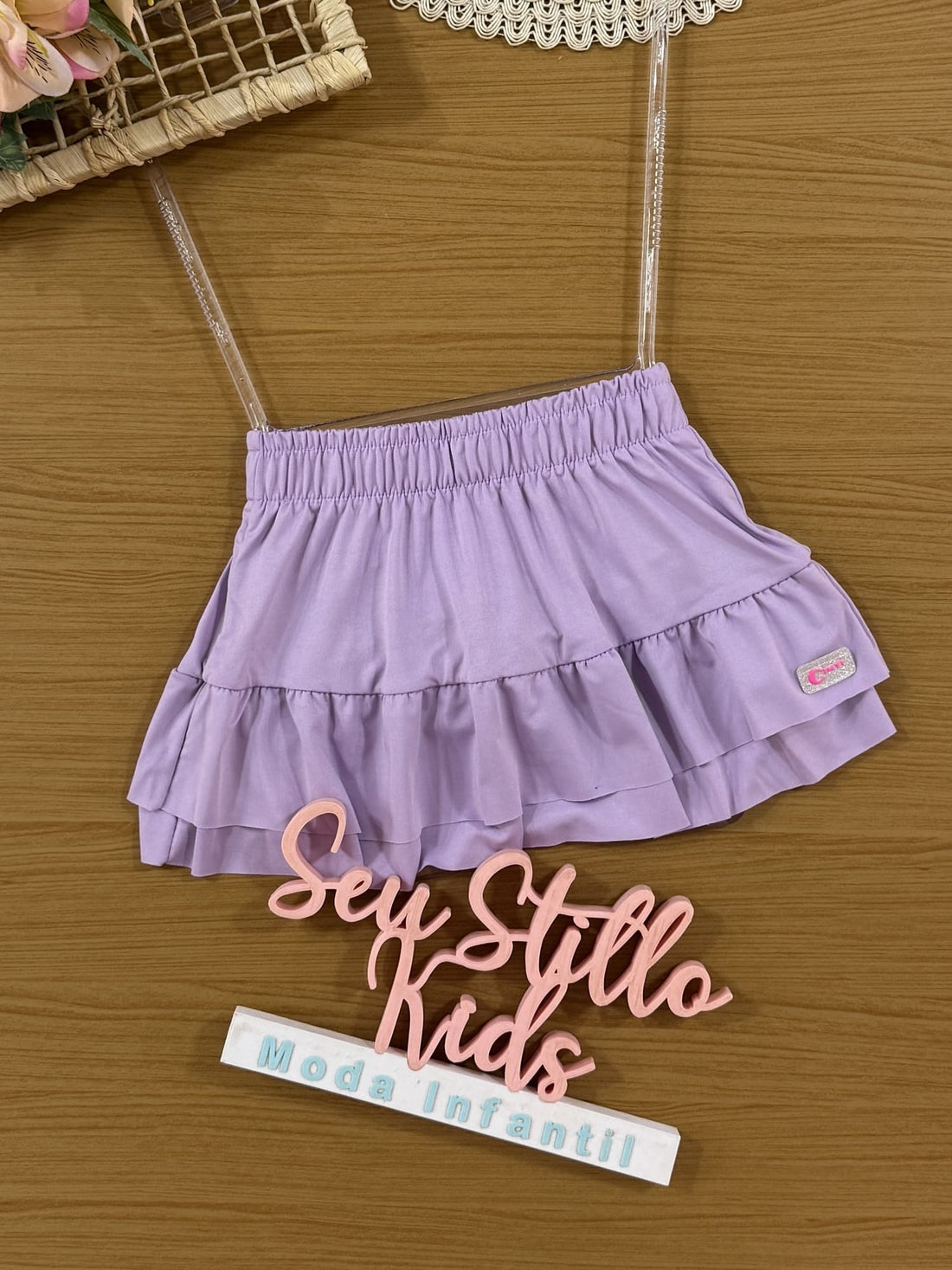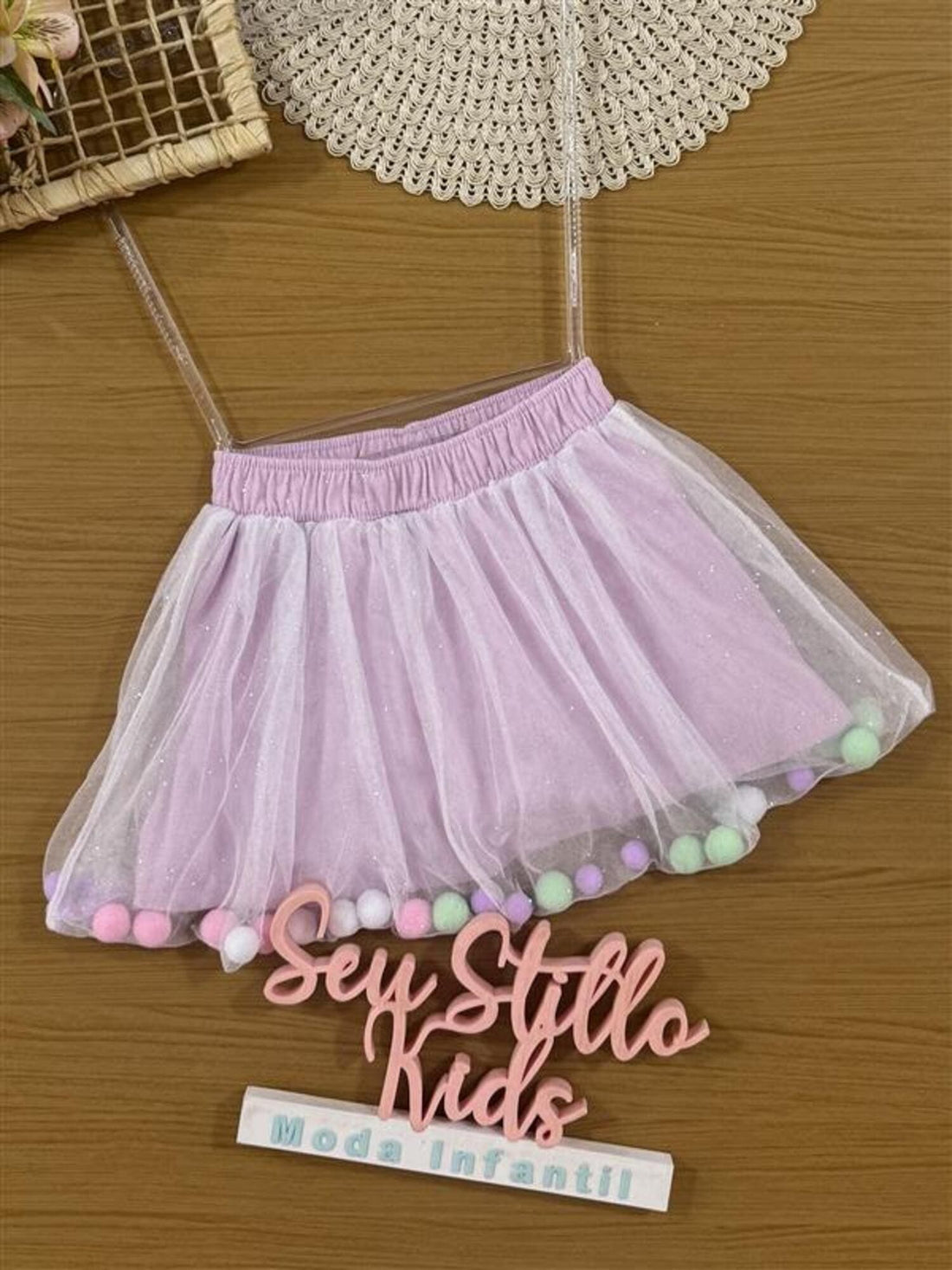 Saia Infantil Cinti Verão Lilás em Tule com Brilho