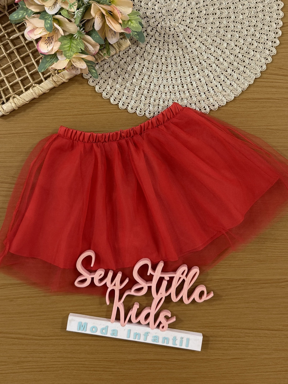 Saia Infantil Cinti Verão Vermelha em Tule com Glitter