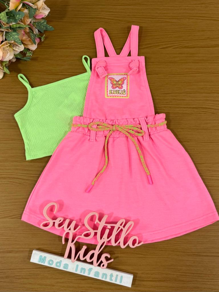 Salopete Infantil Kukie Verão Com Top Borboletas