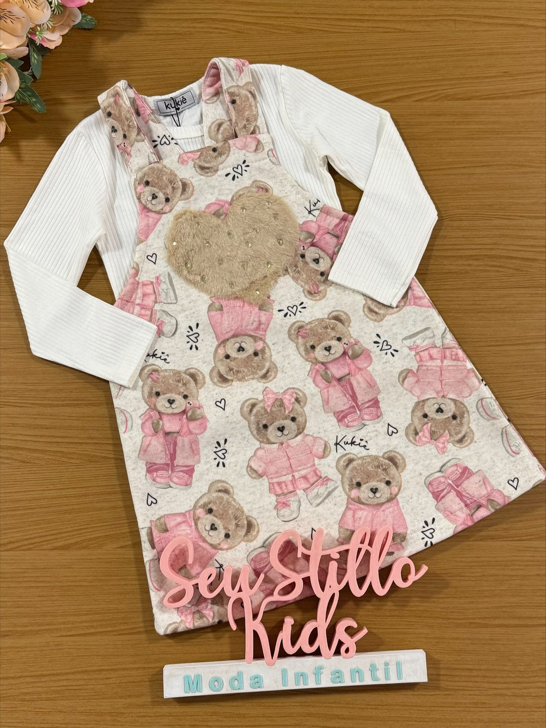 Salopete Infantil Kukie Inverno Ursinha com Blusa Manga Longa