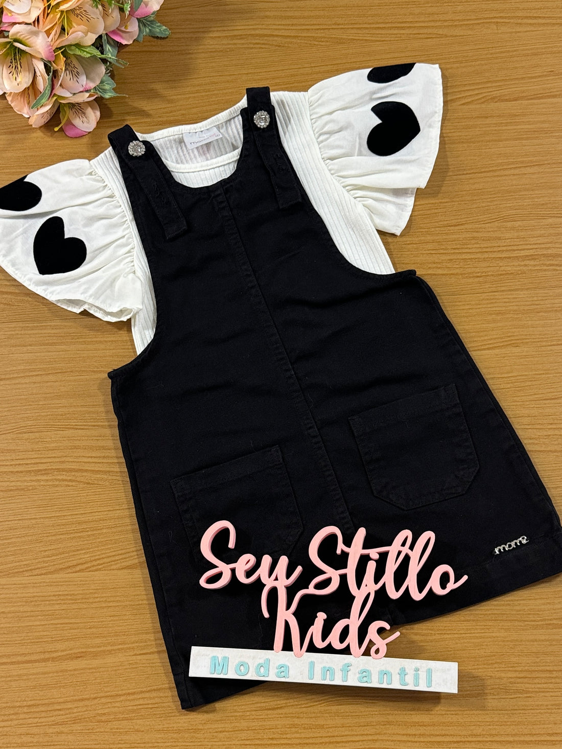 Salopete Infantil Catavento Verão Coração e Blusa Preta