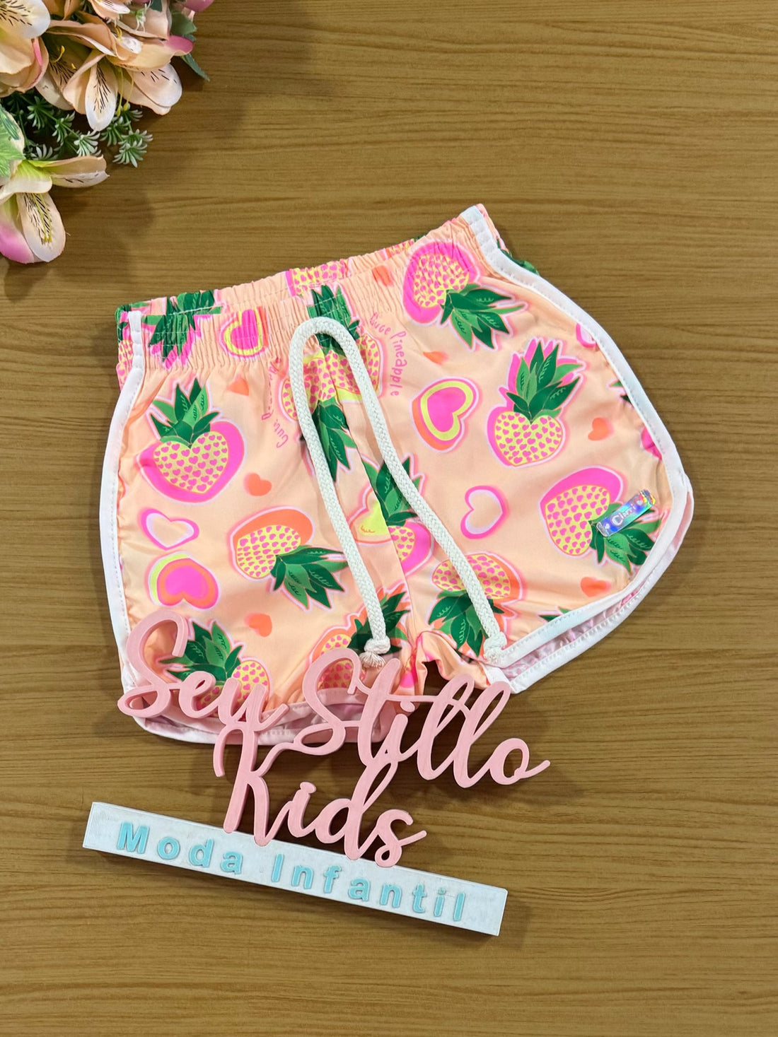 Shorts Infantil Cinti Verão Nylon Laranja Abacaxi