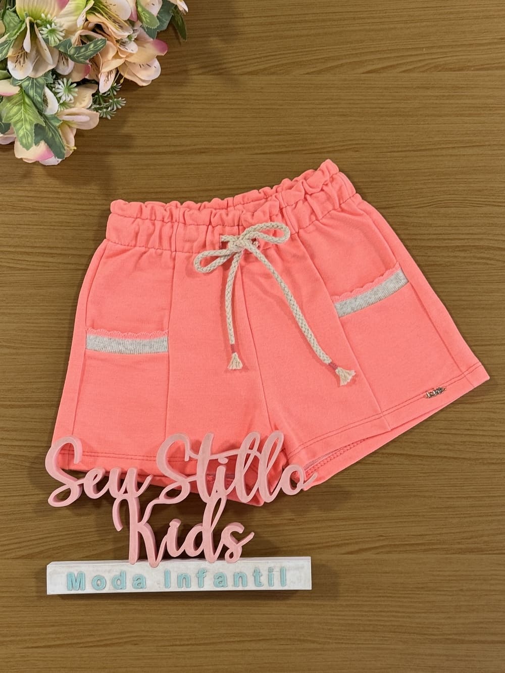 Shorts Infantil Siri Kids Nylon Leticia Laranja Fluor 39063