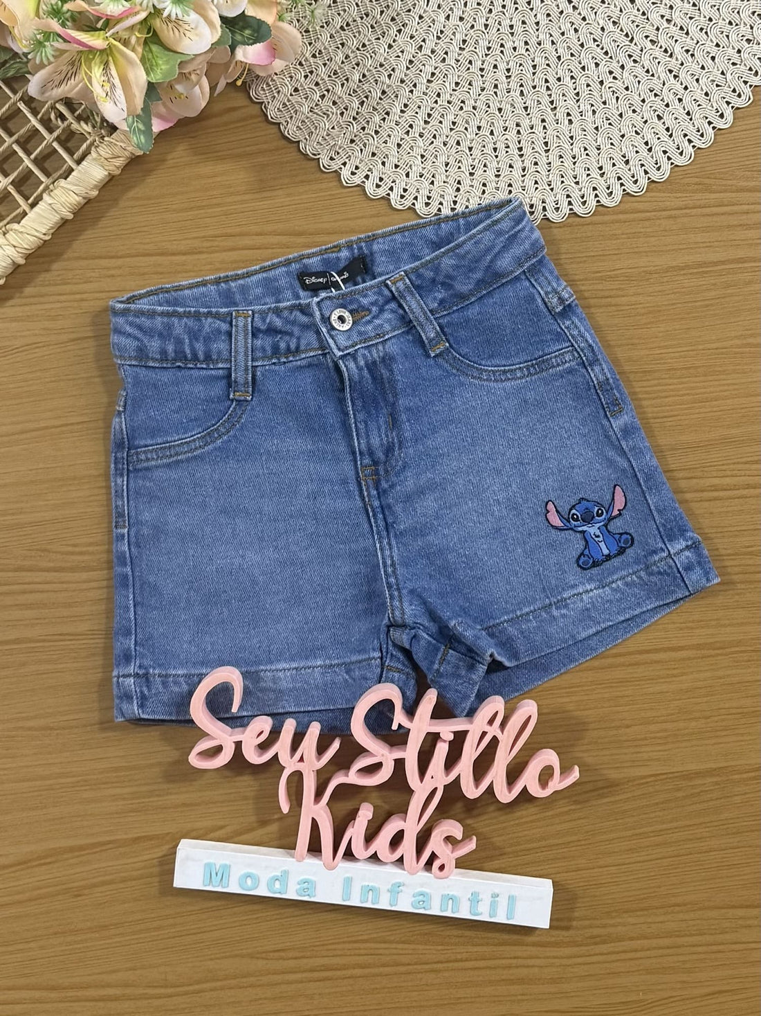 Shorts Saia infantil Animê Jeans Stitch Disney