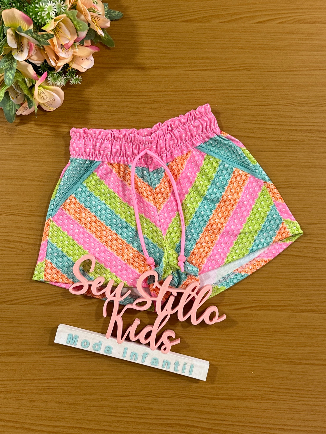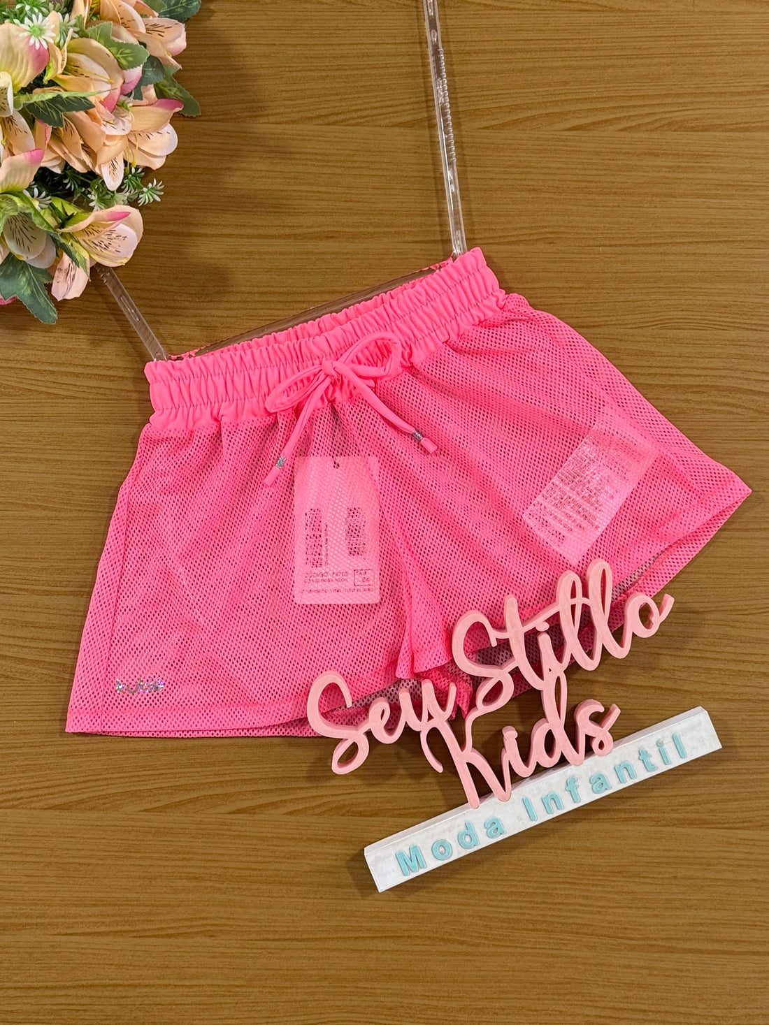 Shorts Infantil Kukie Verão de Praia Telado Rosa Neon